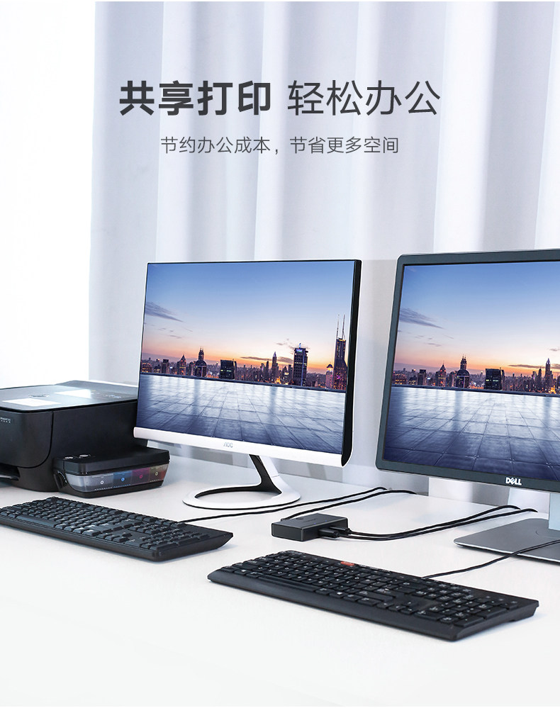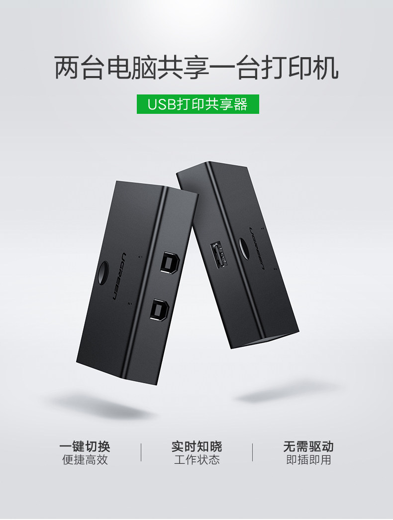 Green Union 30345 USB printer shareware 2-port switcher computer sharing 2 in 1 out of 2-cut-one conversion-Taobao