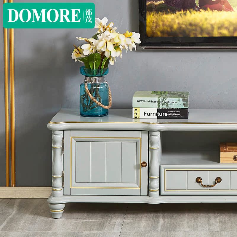 American light luxury solid wood oak TV cabinet coffee table combination high and low wine cabinet luxury BMW gray living room furniture