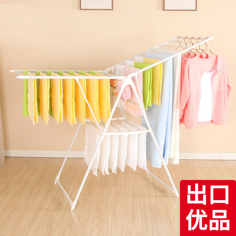 SHESHOME clothes rack Floor folding clothes rack Stainless steel simple indoor balcony mobile airfoil drying rack