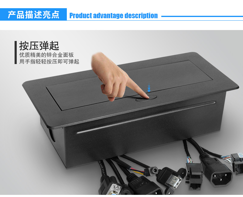 Damping pop-up multimedia desktop socket multifunction information interface box table surface power supply with wire free of welding