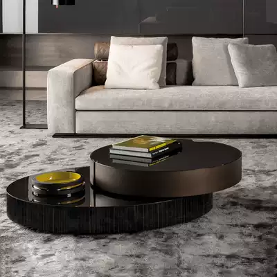 Italian creative light luxury size coffee table Simple tempered glass surface model room double-layer round coffee table side combination
