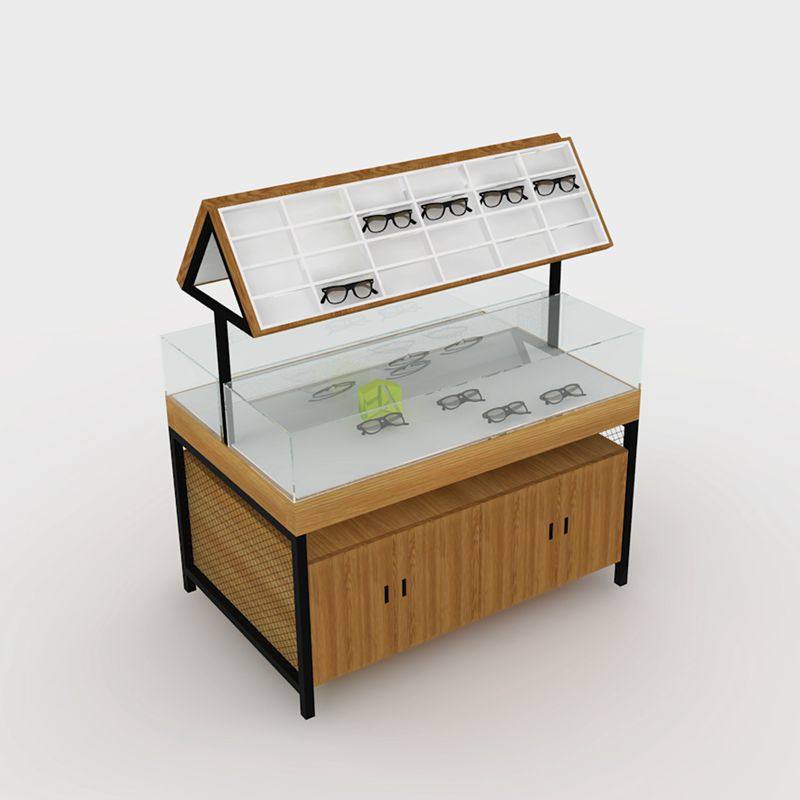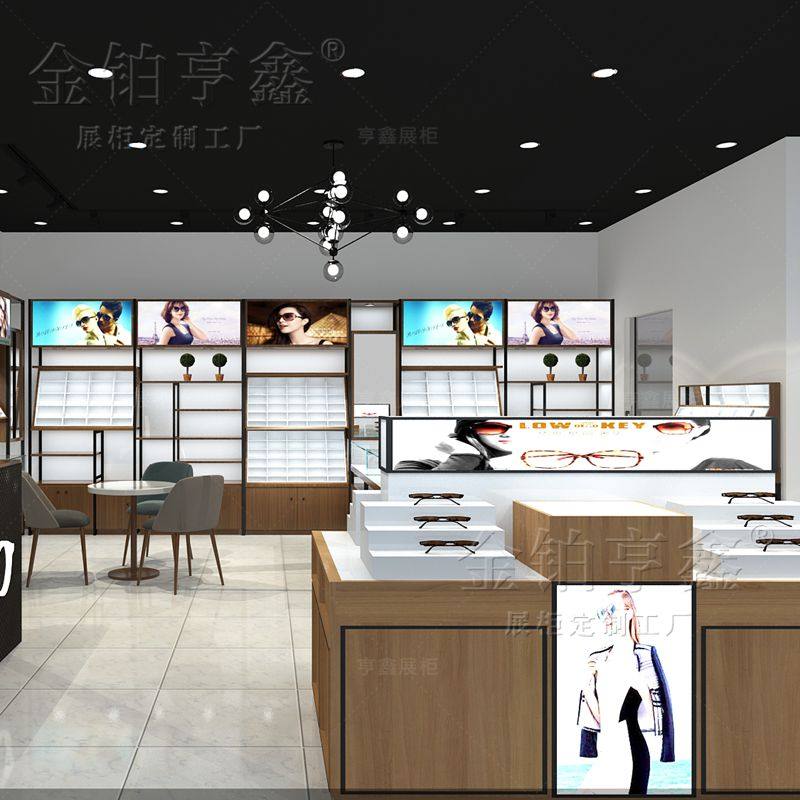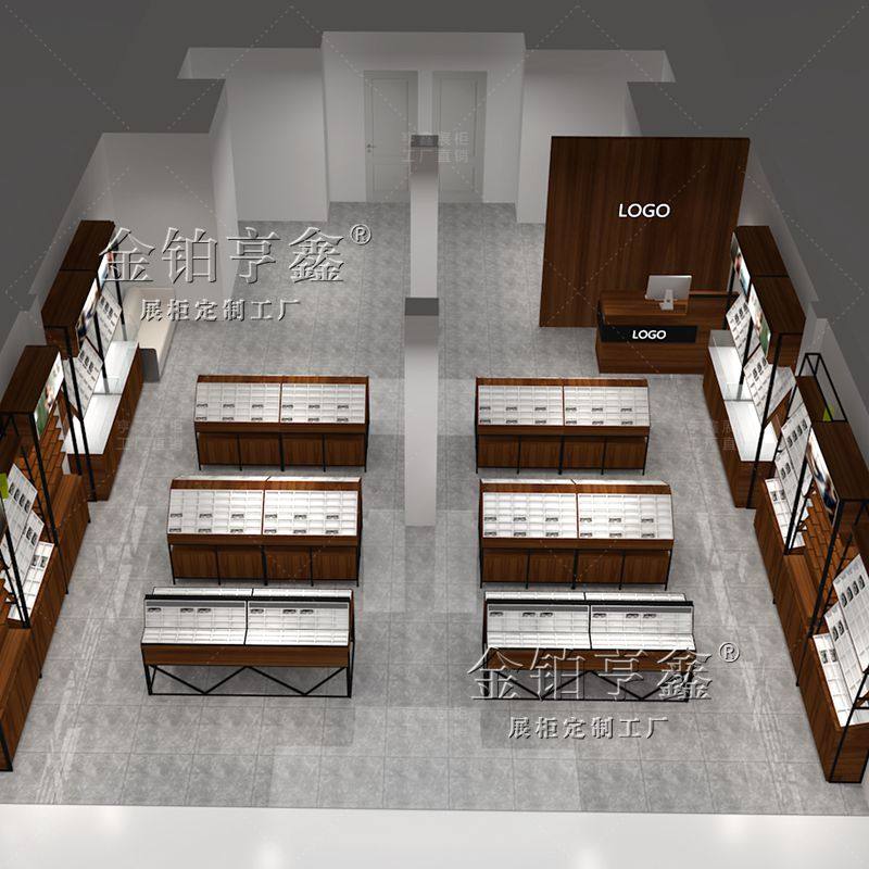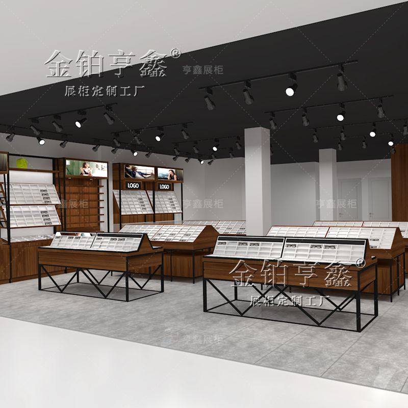 Glasses shop glasses counter custom glasses display shelves Iron wood combined with vertical glasses high cabinet Whole shop decoration