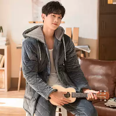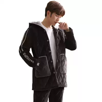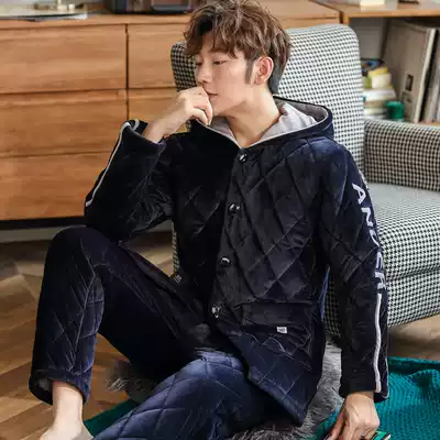 Antarctic men's pajamas winter thickened coral velvet three-layer cotton autumn and winter flannel warm home suit