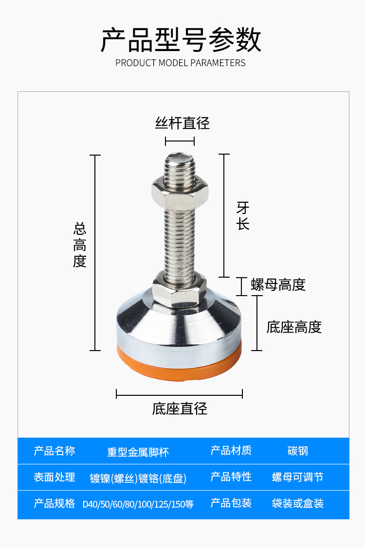 Heavy duty carbon steel adjustment foot Anchor screw Mechanical machine foot Bed adjustment foot horizontal support foot Orange rubber