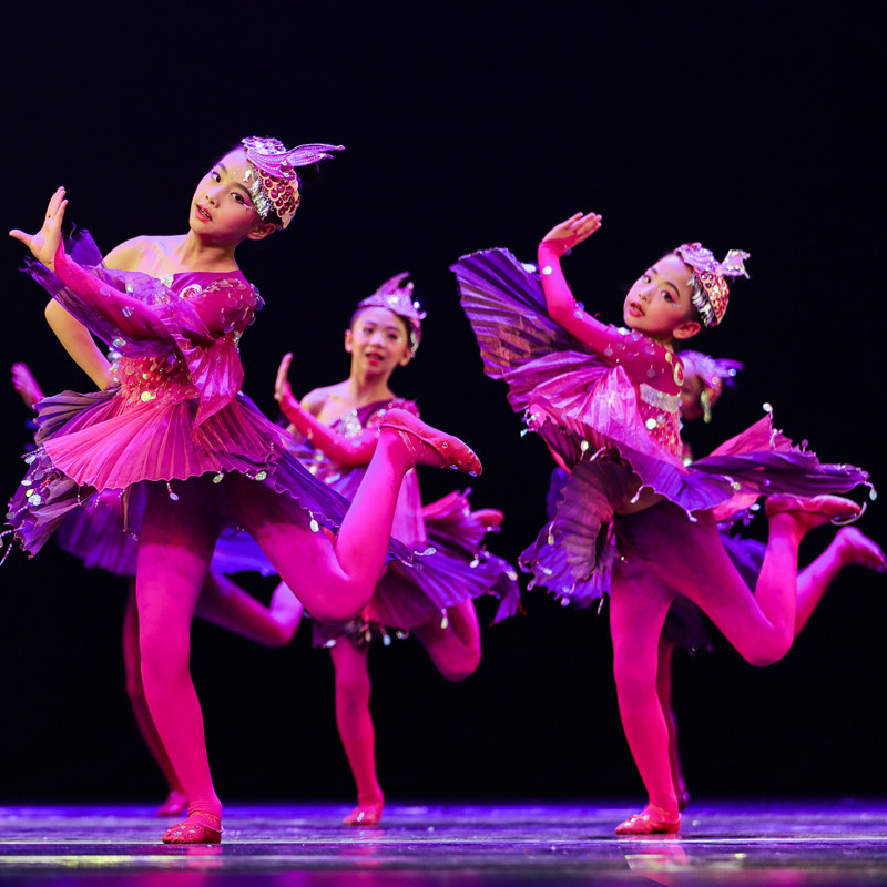 The Little Hornet is in the water to perform the children's children's cheesed and chirpy dance performance costumes
