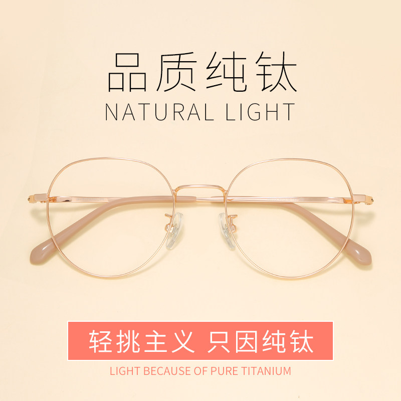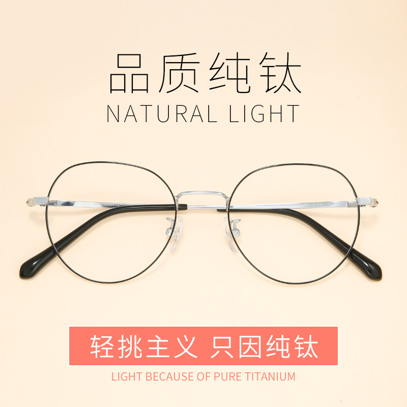 Quality pure titanium myopia glasses female with degree of dimensional frame network red face and thin flat mirror male