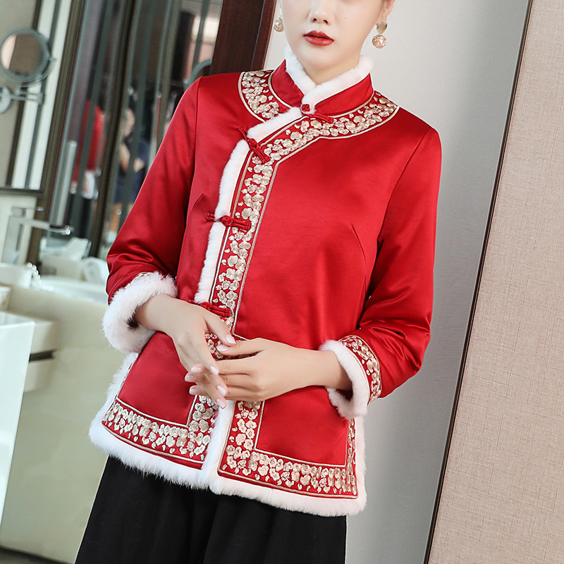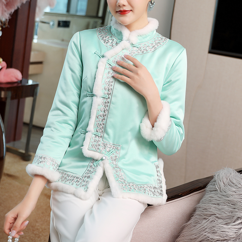 Retro Republic of China Improved Han clothing disc buckle qipao jacket with high elegant Chinese wind and women's clothing and women's cotton padded jacket for winter clothing