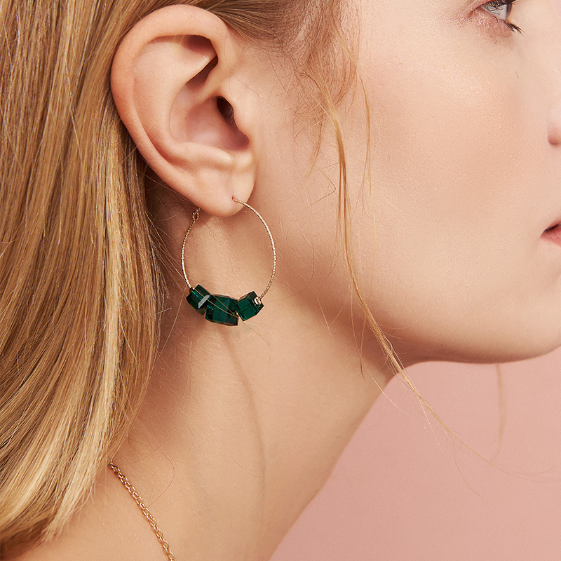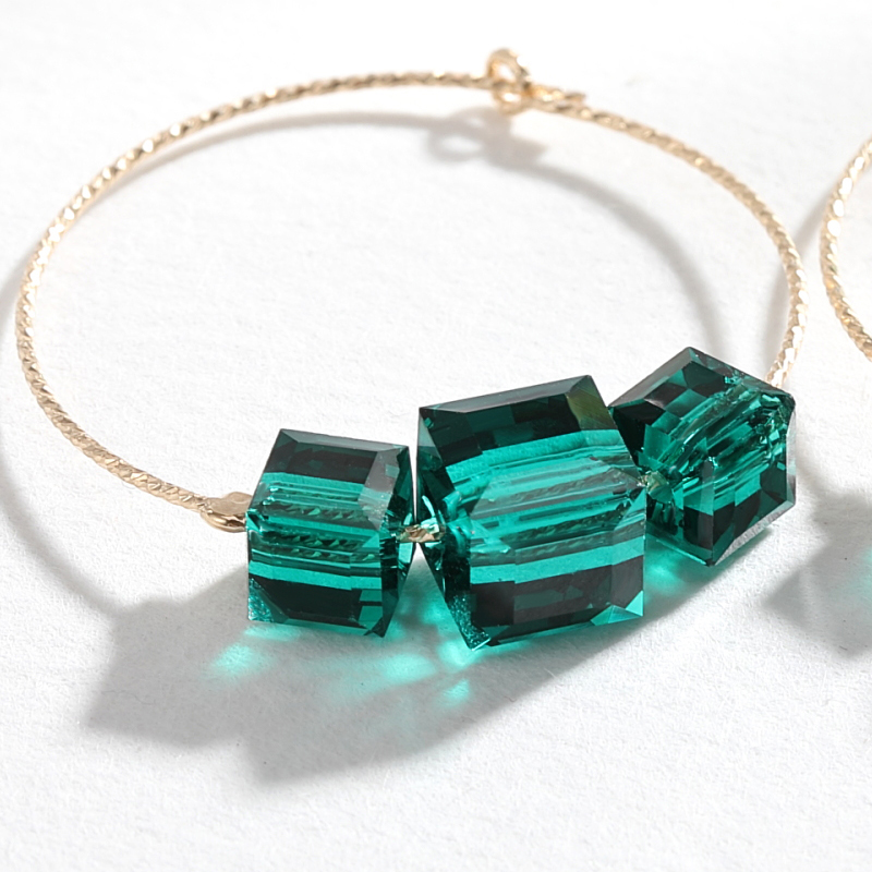 French earrings original elegant grandmother green square sugar earrings Austrian crystal 14K injection ear