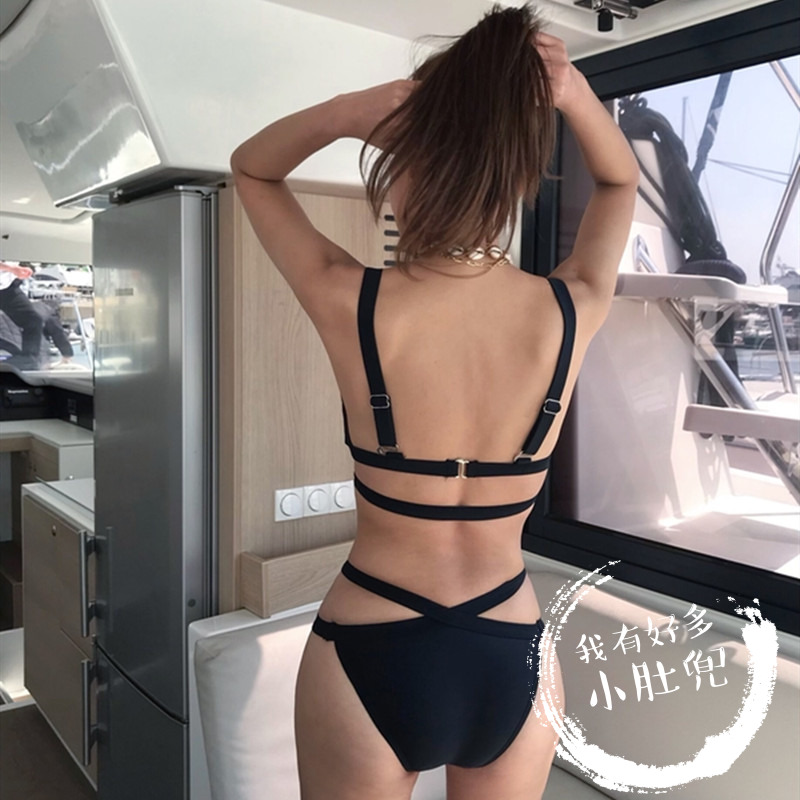 Korean ins sexy bikini swimsuit black small chest gathered three-point hot spring net red swimsuit bikini