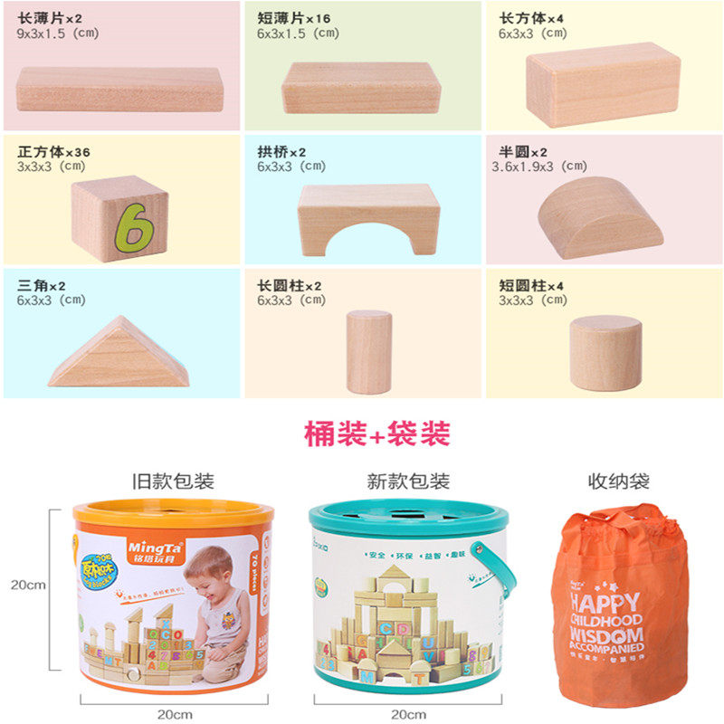 Nameta Building Blocks 100 Grain Barrels of large grain solid wood Head 1-3-year-old Child nibbling Cognitive Parquet Toy