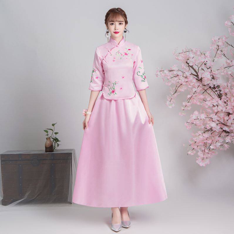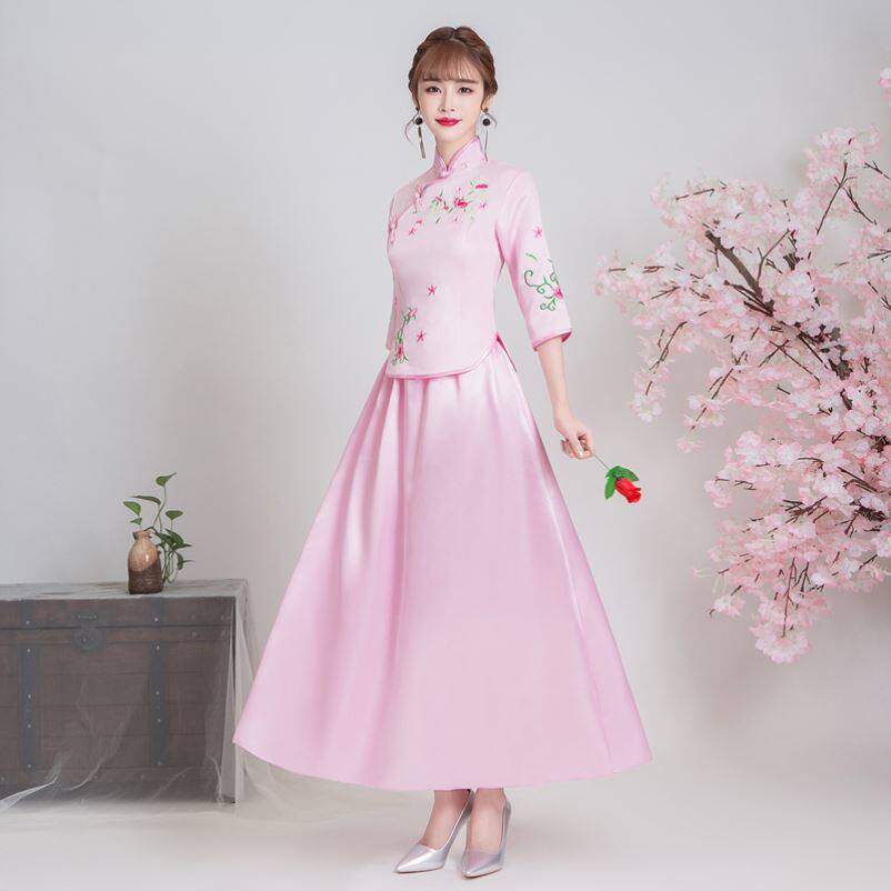 Large size winter season bridesmaid dress personality thick long-sleeved groomsmen bridesmaid dress suit Chinese style mandarin jacket