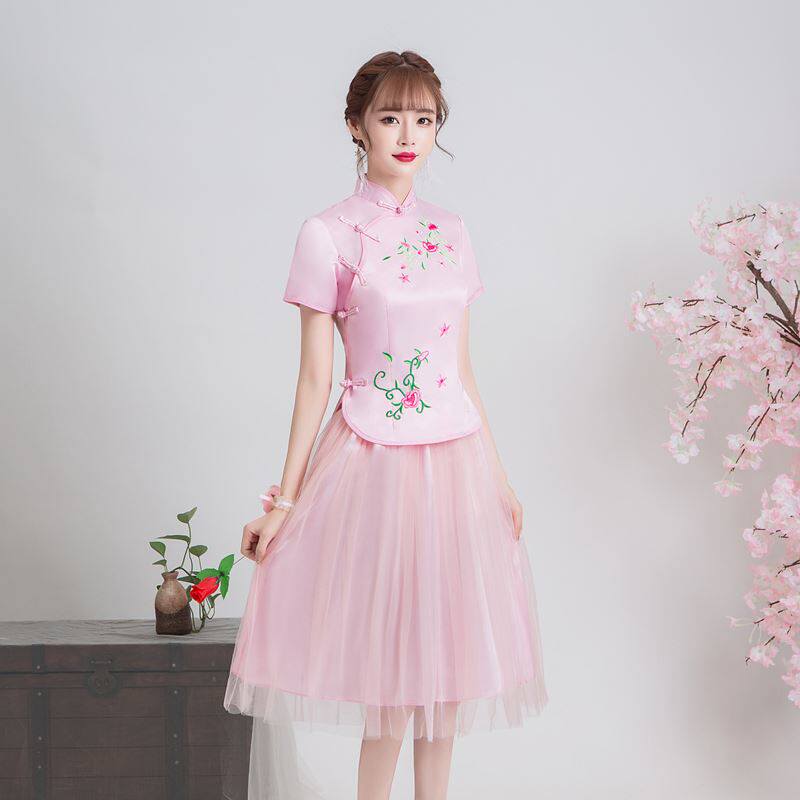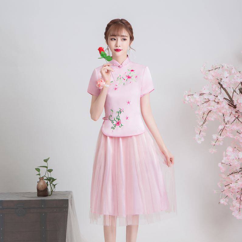 Short-sleeved skirt, pink embroidery, wrist flower-J56 pink embroidery, wrist flower-F14 plum embroidery, wrist flower-H63 black men's embroidery, sunglasses, rose-V76 wine red