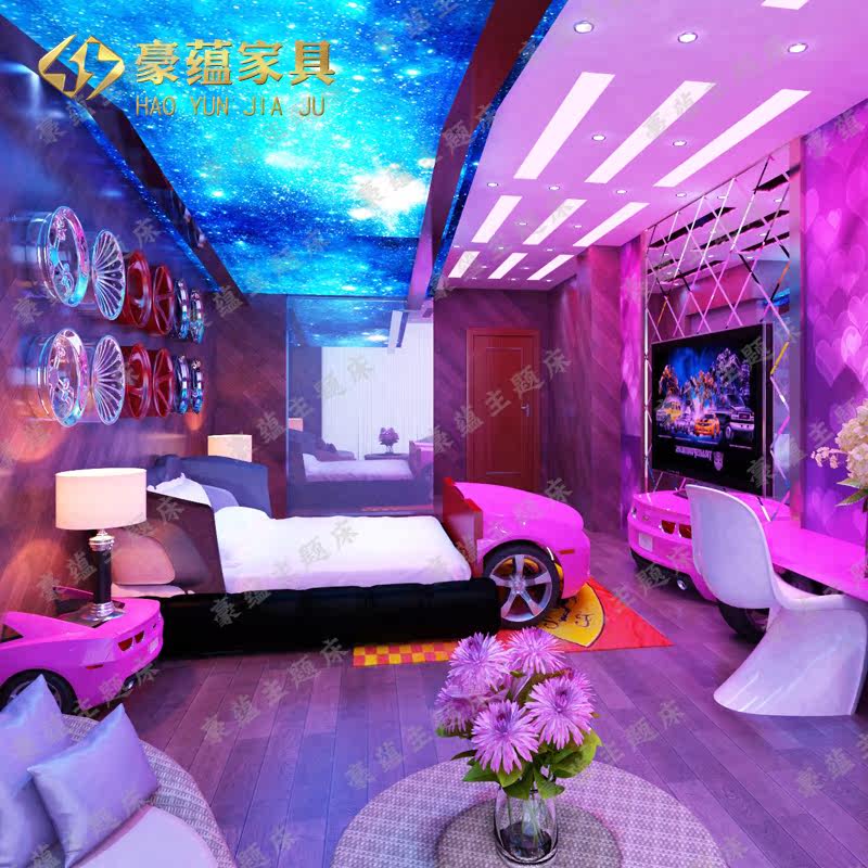 Multifunctional couple bed simulation car theme bed double hotel vibration electric bed fashion car bed manufacturer