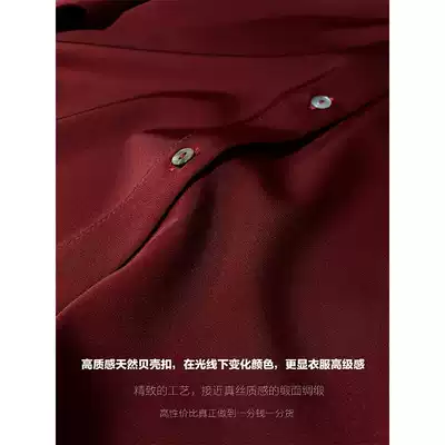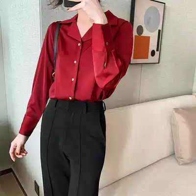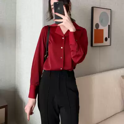 JACOOBS scarlet satin shirt female design sense niche suit collar retro port flavor temperament