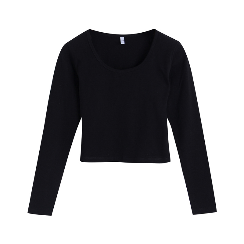 Ruan Petty Lacquer Dew Navel Undershirt Woman Long Sleeve Autumn Winter Short high waist Supper body Tight Body Tight Leak Belly Button slim pure color blouse