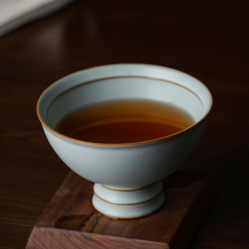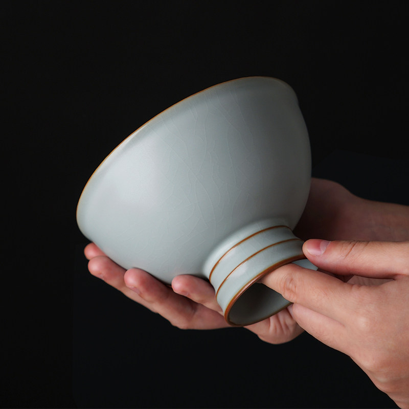 Artisanal Ru Kiln Bowl ceramic Single Large Number High foot Home Jingdezhen Retro imitation Song Dynasty porcelain Qingporcelain Porcelain Gift Box