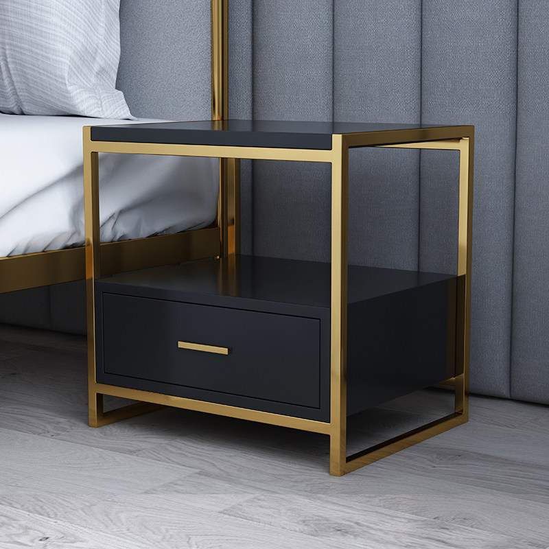Nordic light luxury bedside table simple modern metal paint bedside storage cabinet bedroom storage cabinet solid wood bedside table