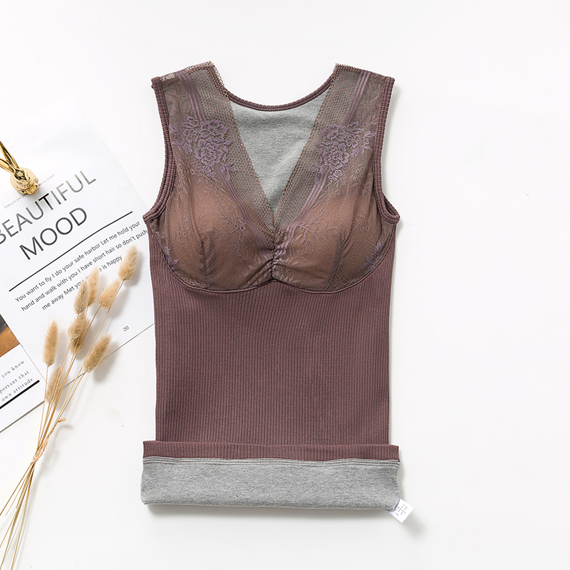 Winter warm vest female lace V collar plus suede thickened with bra integrated with warm clothes Shangni Show