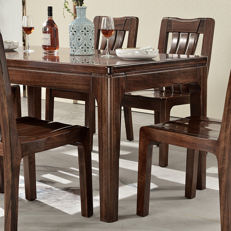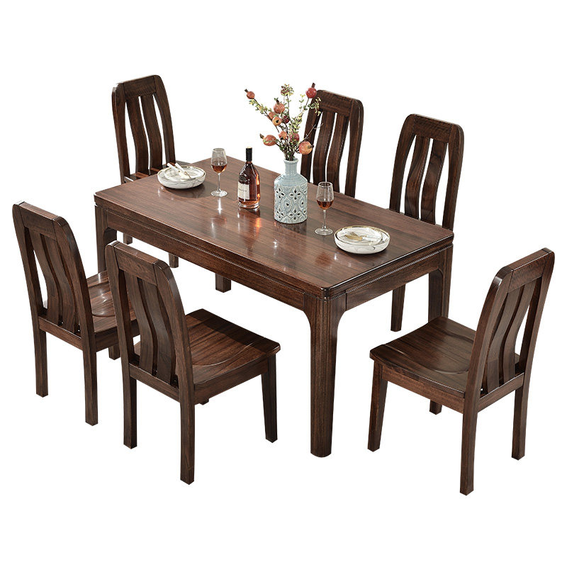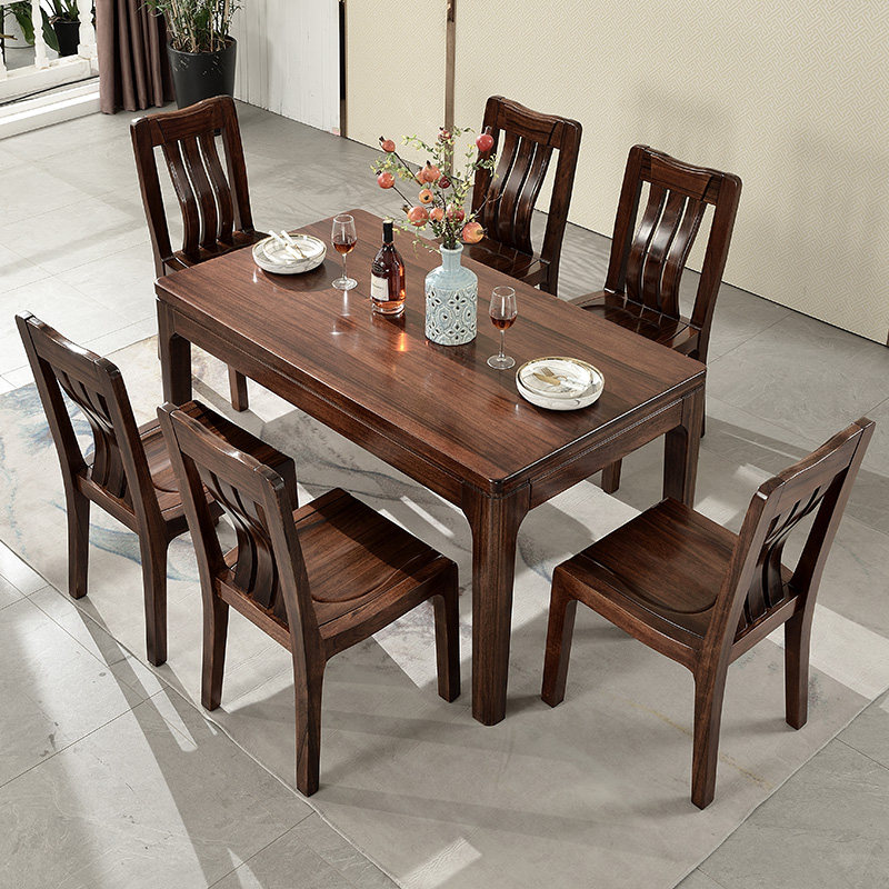 Black walnut wood solid wood dining table and chair combination 1 5 meters rectangular 1 4 dining table modern Chinese dining room furniture
