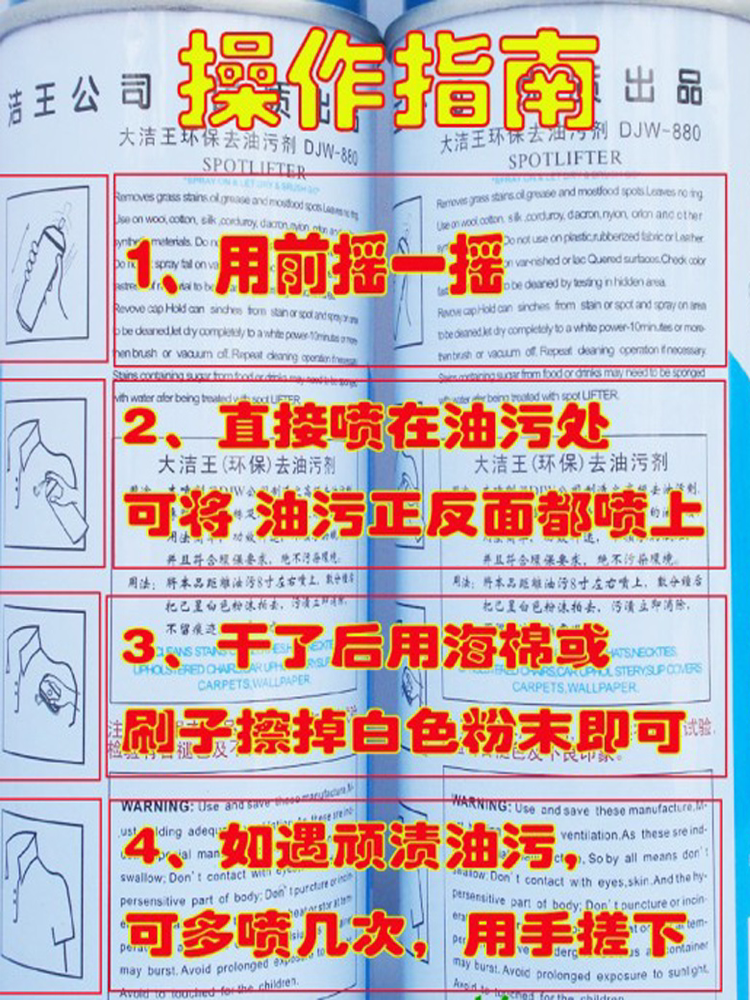 Original Dajiewang DJW880 silk fabric clothing degreasing one spray clean one clap dry cleaning spray