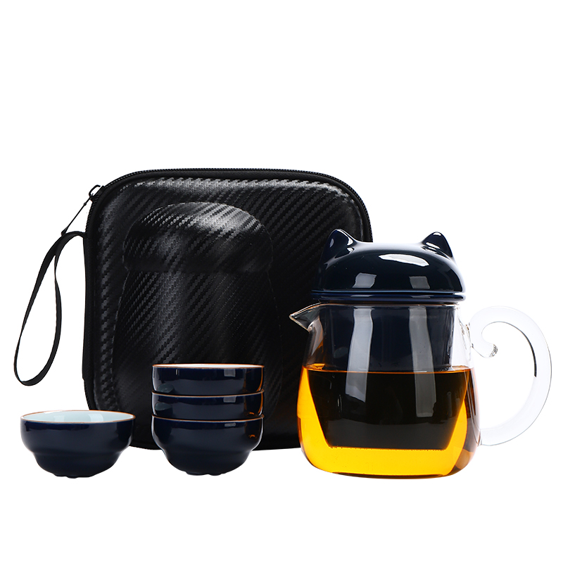 Fast Passenger One Pot of Four Glass Ceramic Portable Travel Tea Set Group Outdoor Office Kung Fu Bubble Teapot Justice Cup