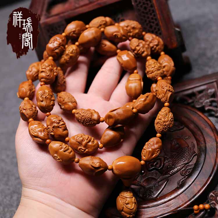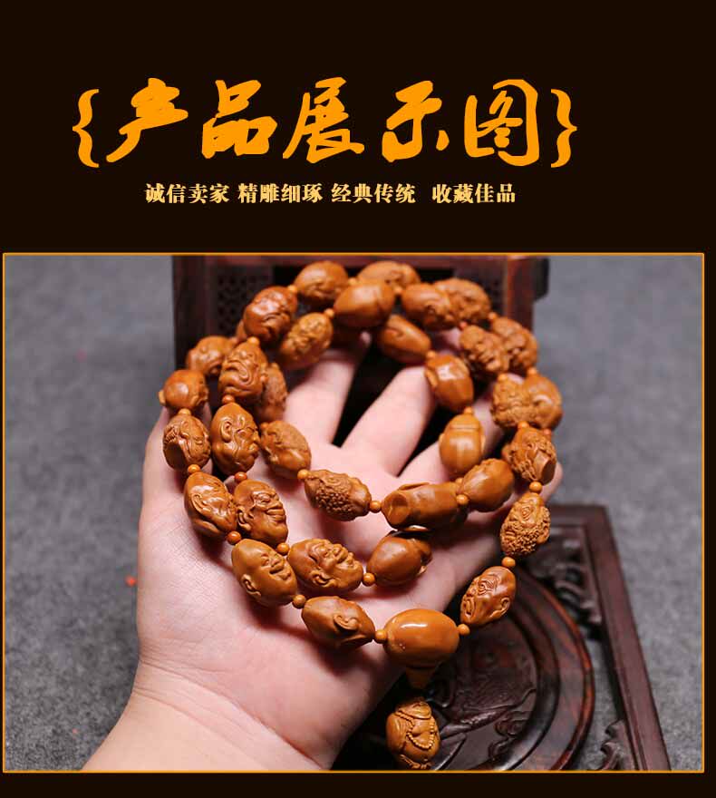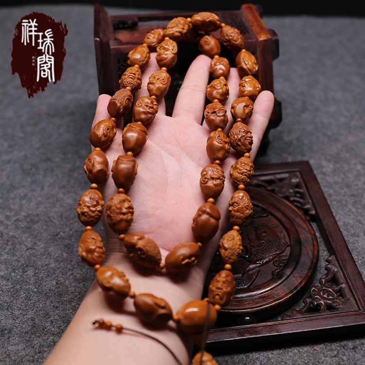Olive core long string bracelet Olive core realistic 36 luohan holding old oil core luohan long string male and female necklace