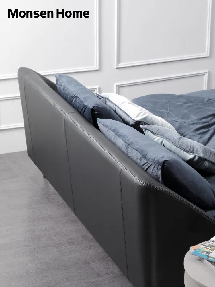 MonsenHome Musheng Nordic Leather Master Bedroom King Bed Modern Simple Soft Package Minimalist Ins Style Double Bed
