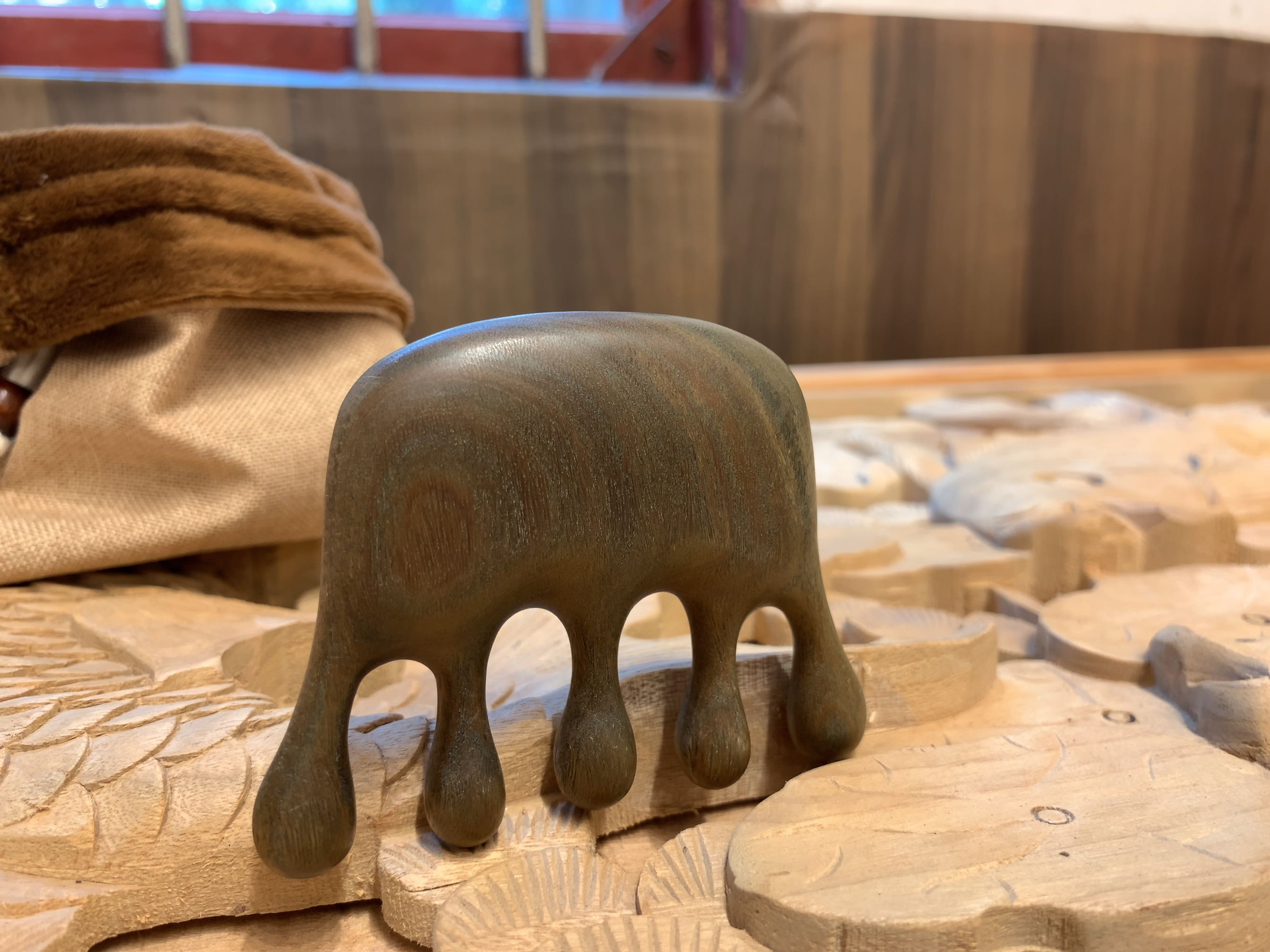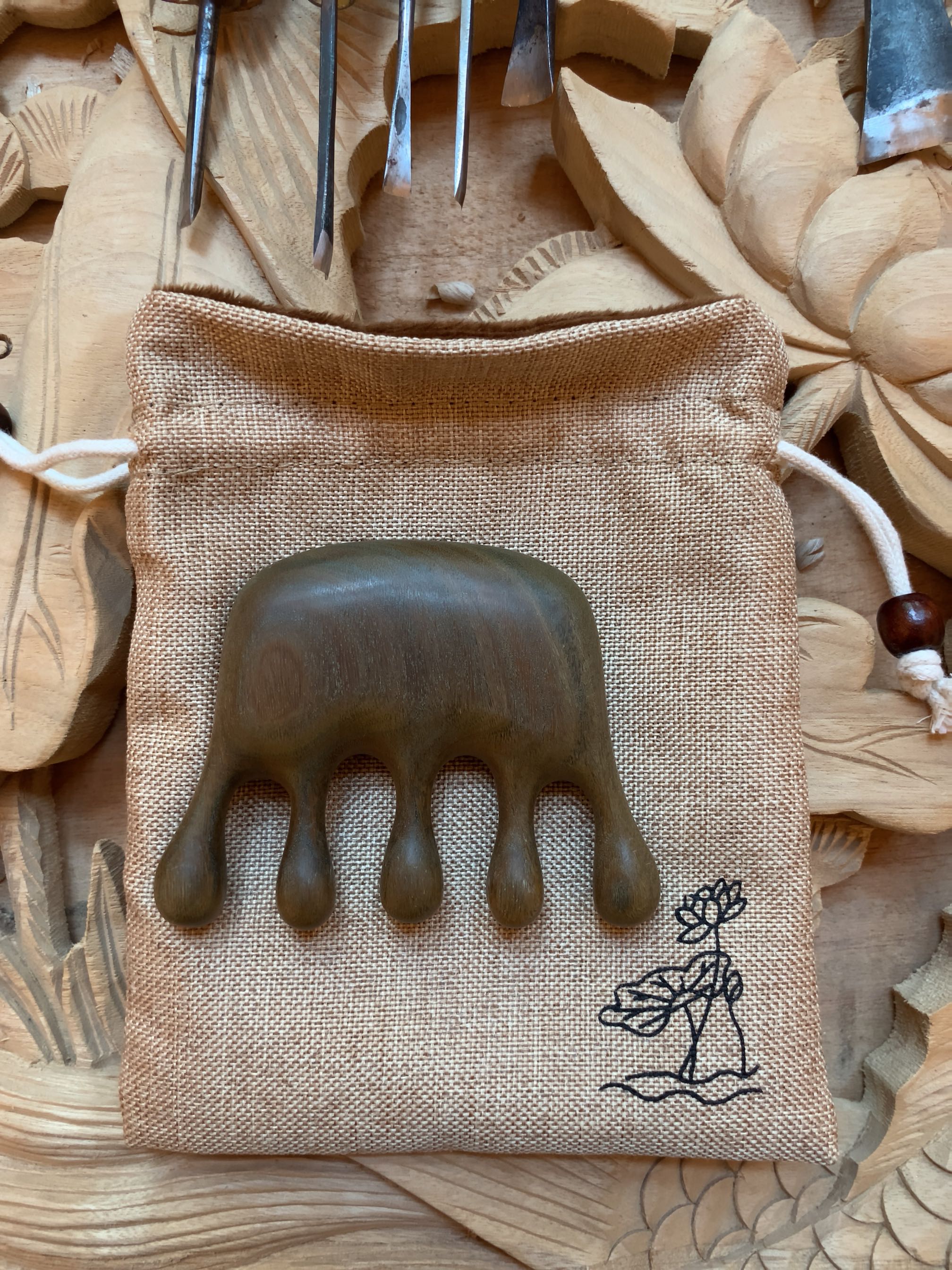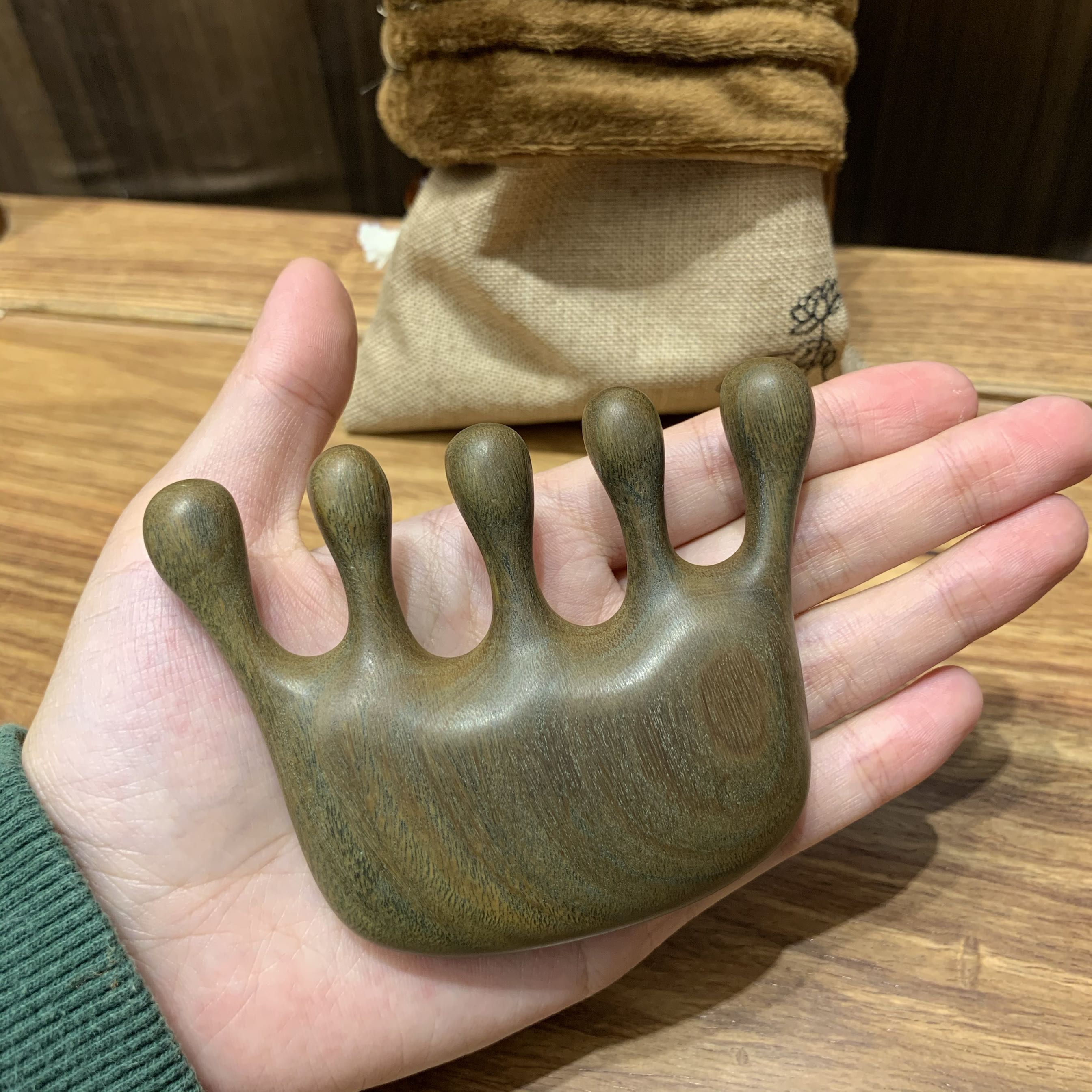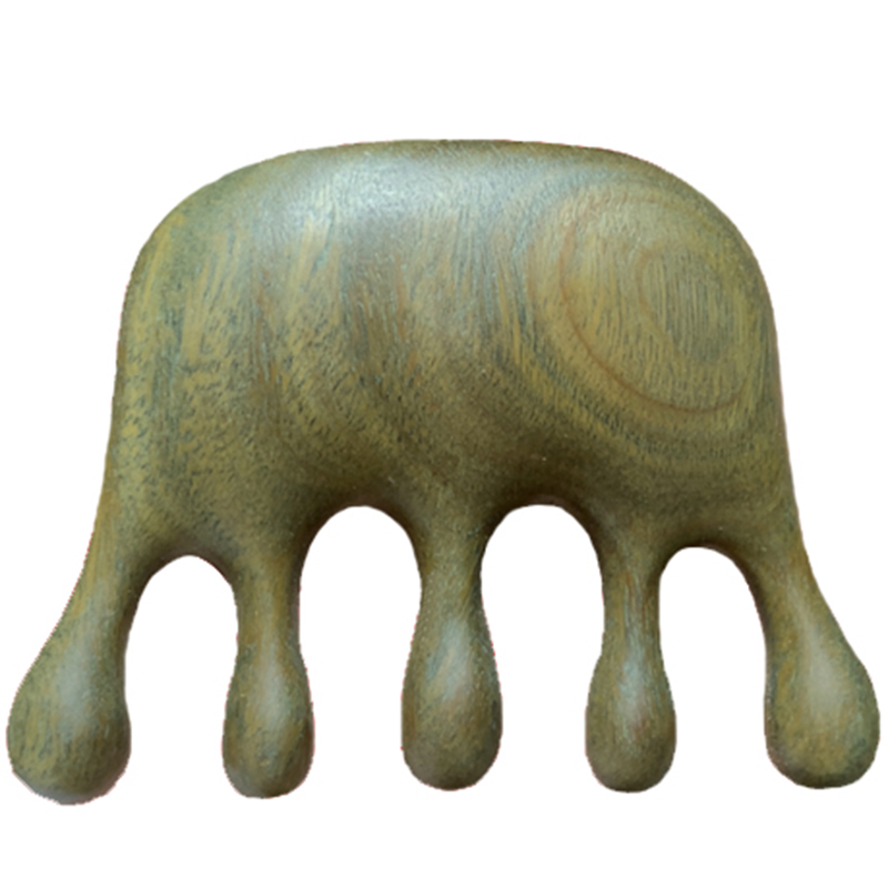 Massage Comb New Yao's Wood Carved Green Sandalwood Small Fat Hand Handmade Wood Five Teeth Big Round Soothing Force Meridians Comb