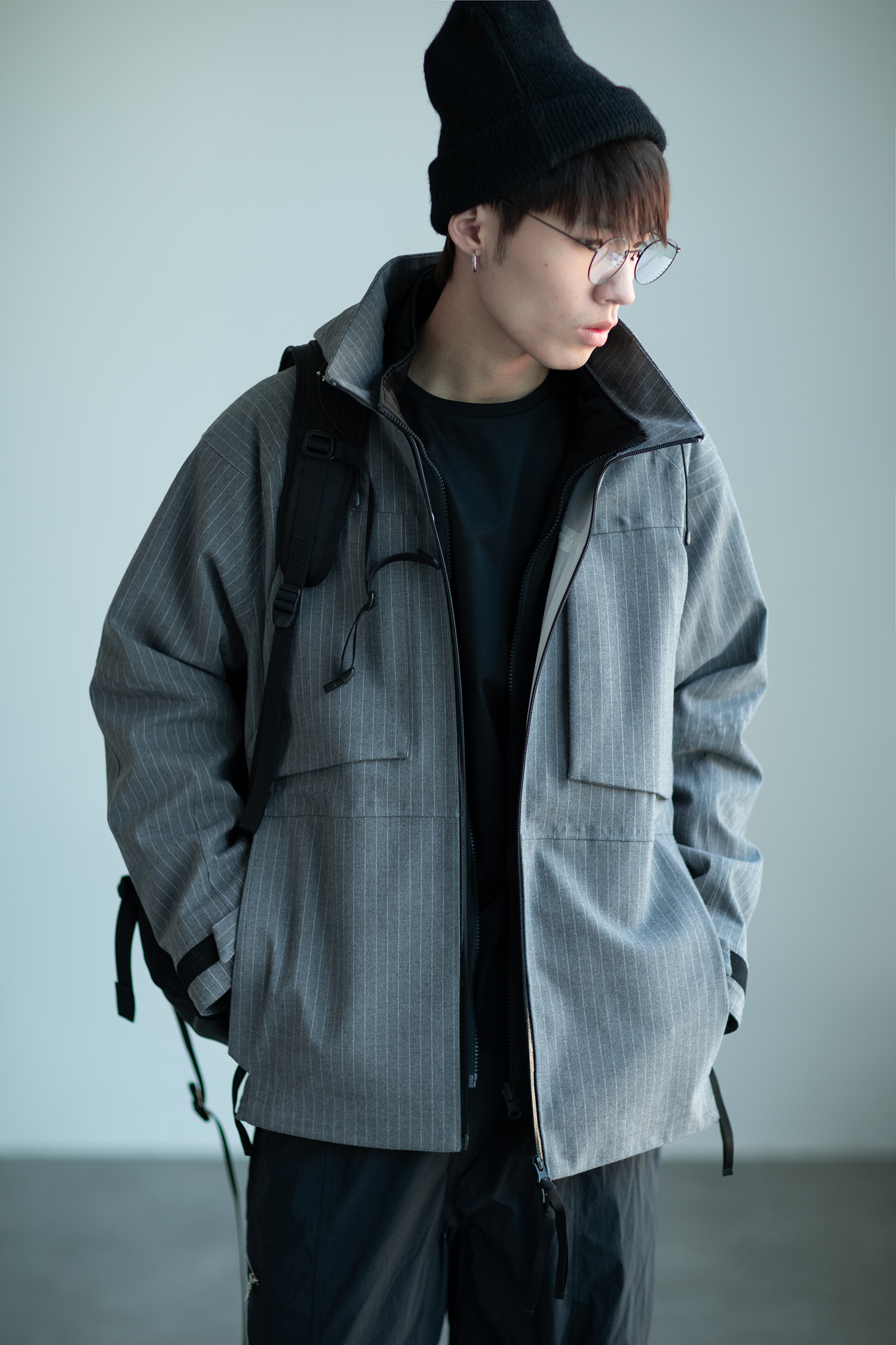 Small Disciples Continent Full-Piece Press Glue Hard Shell Windproof Snow Bilayer Striped Submachine Clothes Two-piece Set