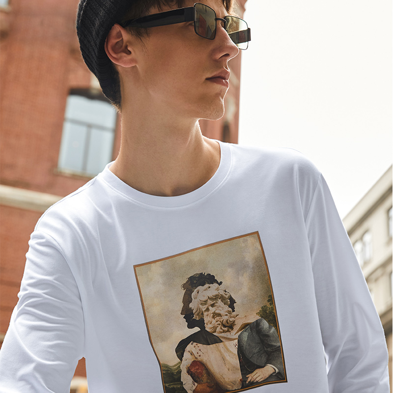 Mrbu fashion men long sleeve T-shirt round collar fashion printed autumn winter long sleeve thick cotton T man set section