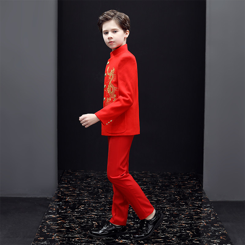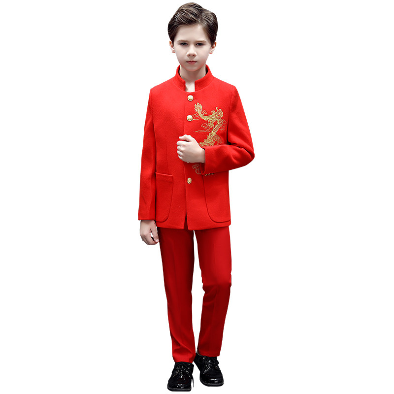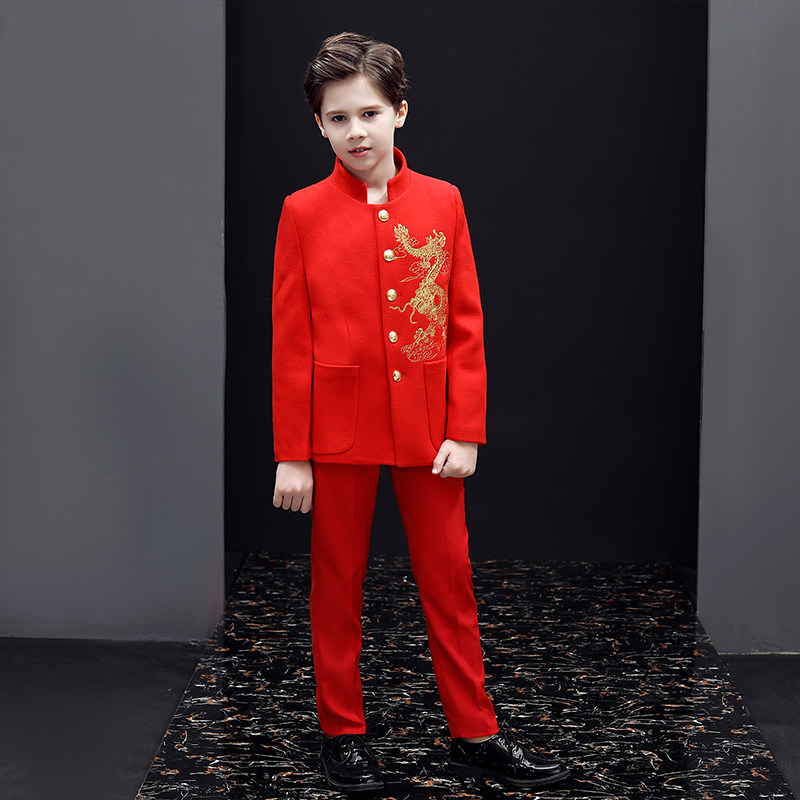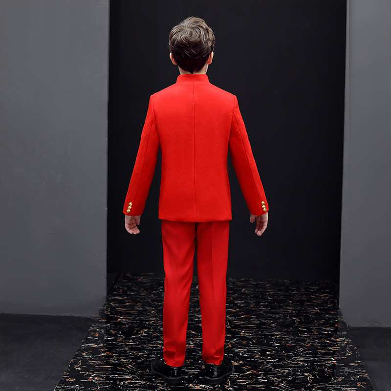 Children's suit suit plus velvet red Zhongshan suit boy's small suit Chinese New Year festive Chinese style thickened New Year's clothing