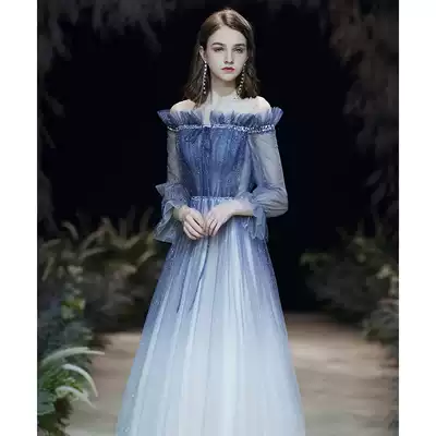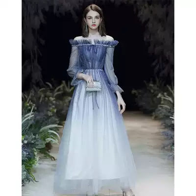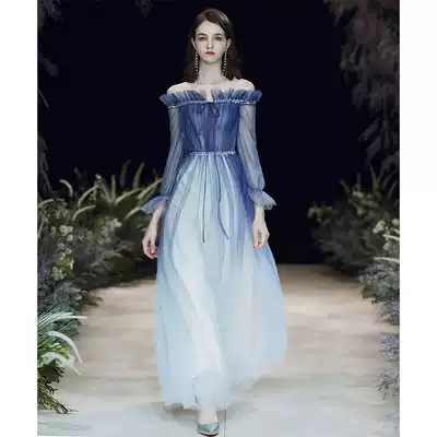 Starry sky gradient evening dress skirt female 2021 new banquet temperament fairy student chorus performance dress long skirt