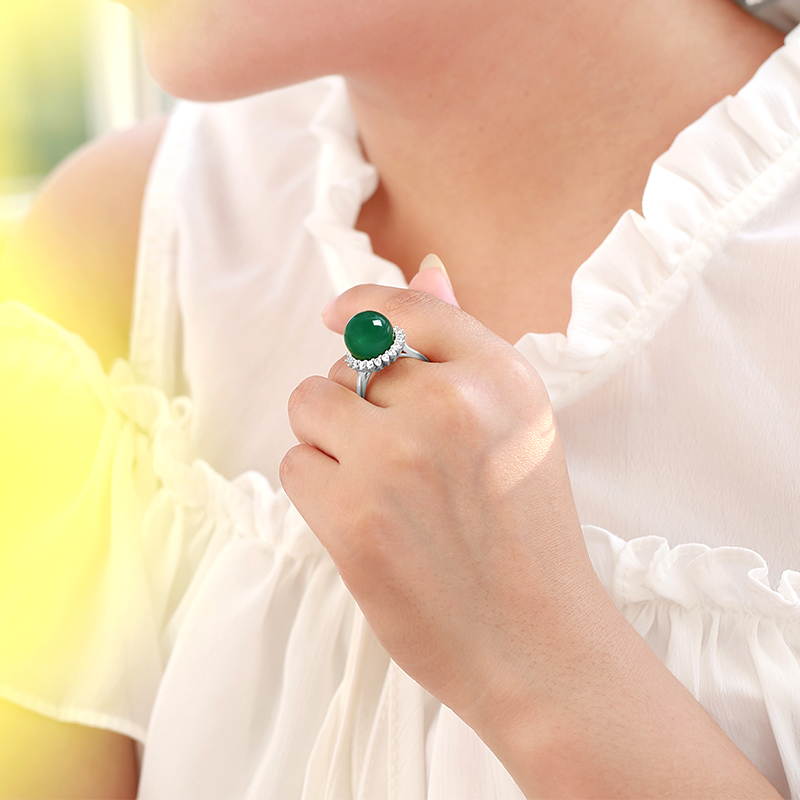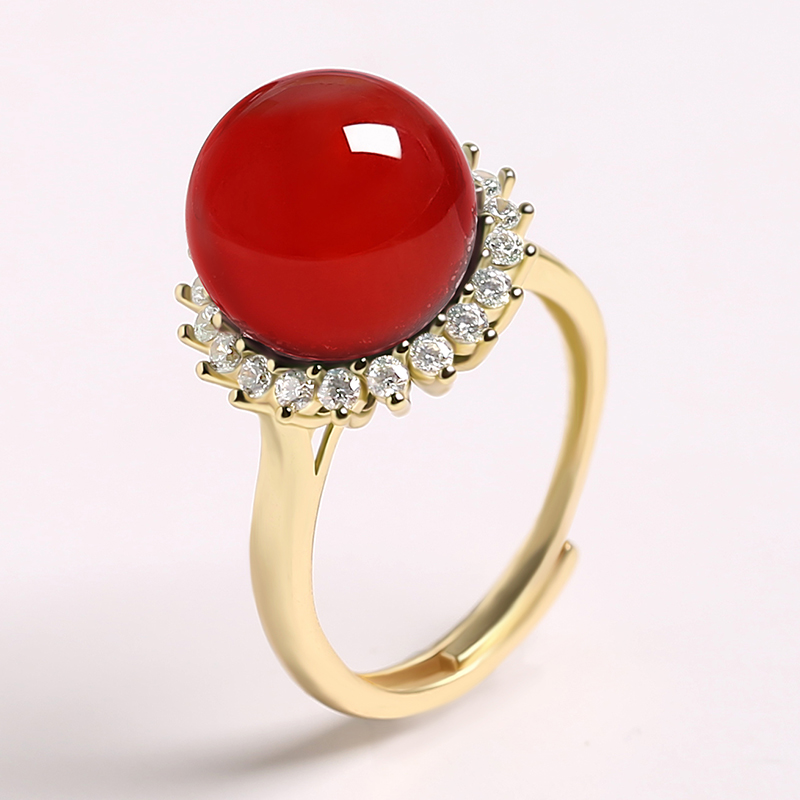 925 sterling silver gemstone ring female 18K gold red agate emerald agate chalcedony live mouth adjustable vintage ring