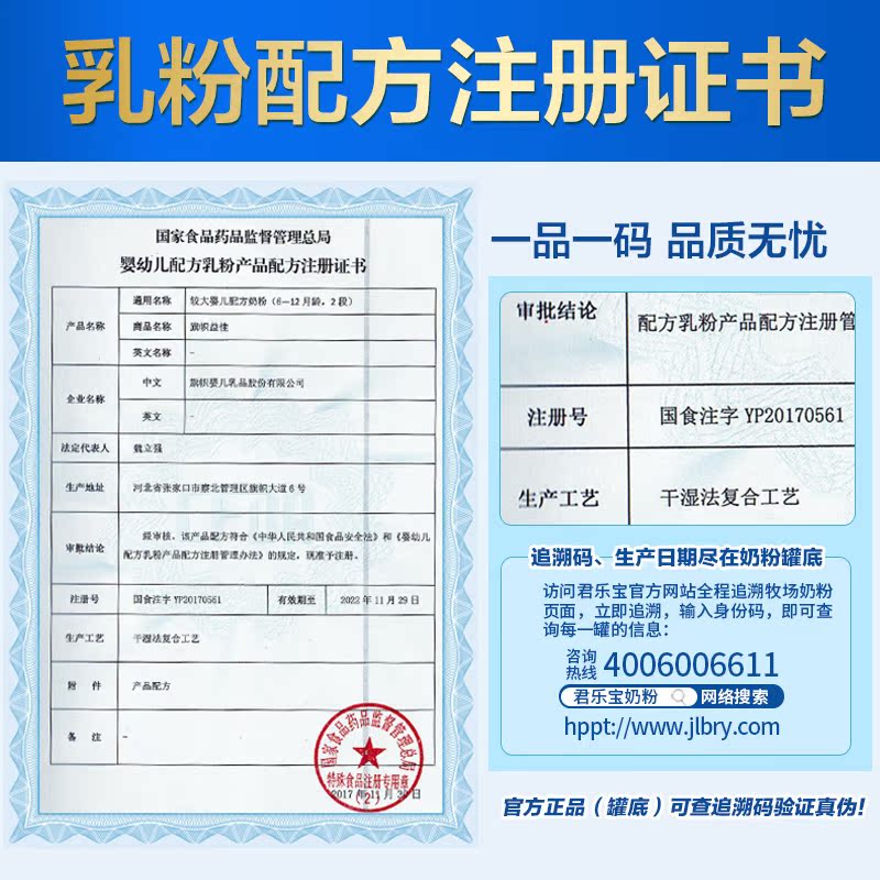 (Today's Special)Junlebao Banner Yijia Blue Pot Milk Powder 2 Infant Milk Powder 2 400g