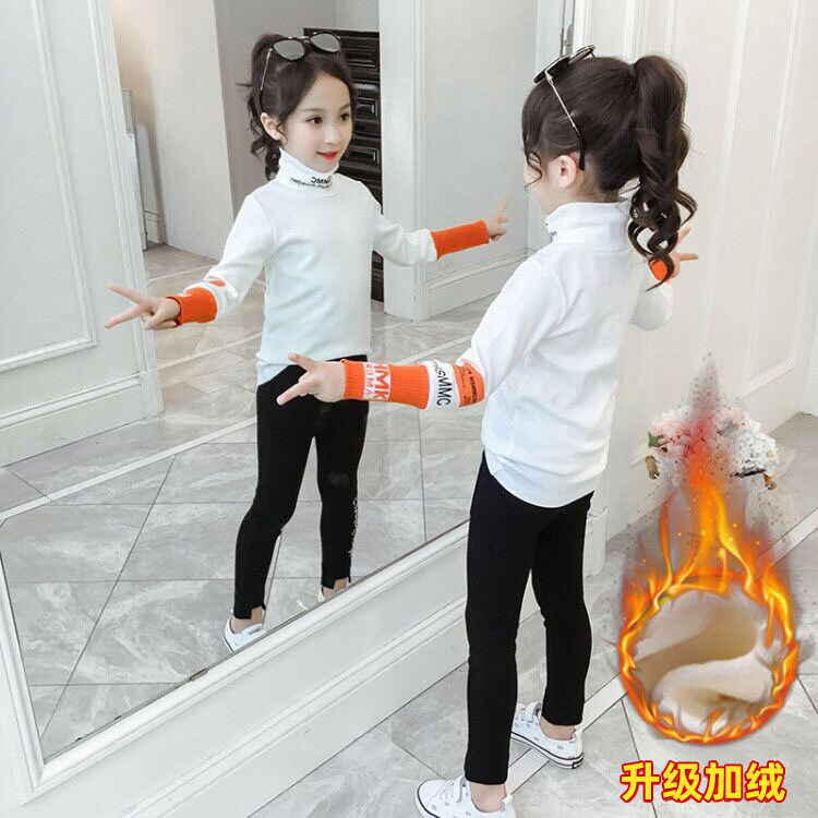 Girl Gush Bottom Jersey 2022 Autumn Winter New Thickening High Collar Long Sleeve T-Shirt Tide Children Foreign Pie 100 Hitch Blouse