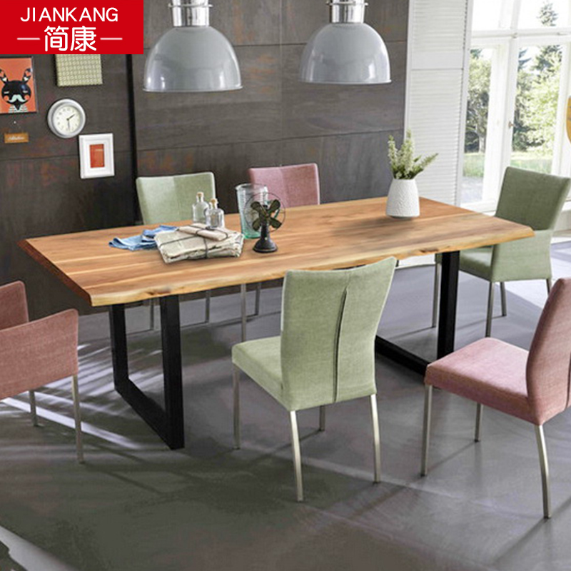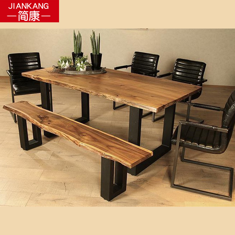 Household solid wood whole board desk Simple desk Conference table Computer table workbench long table Industrial wind desk