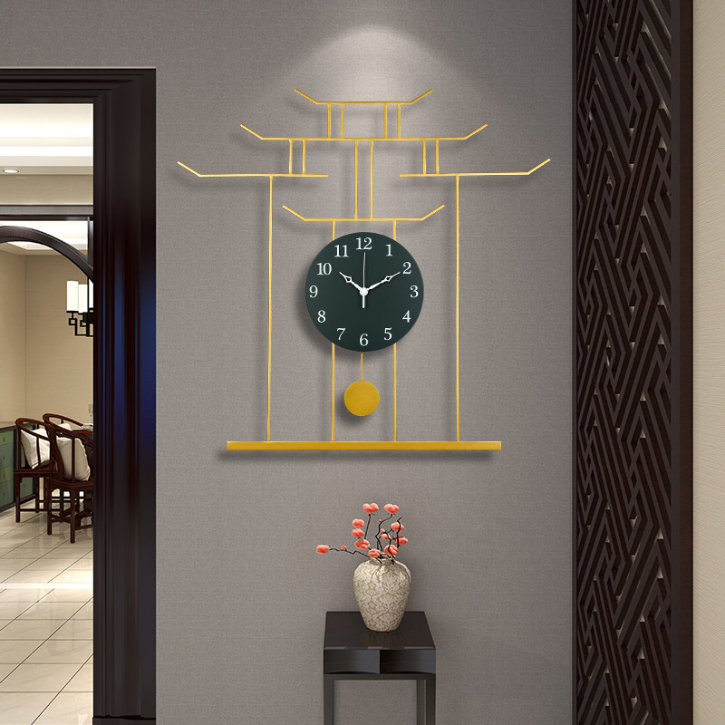 Chinese style living room wall clock home wall light luxury clock restaurant Chinese style large new quartz clock creative clock