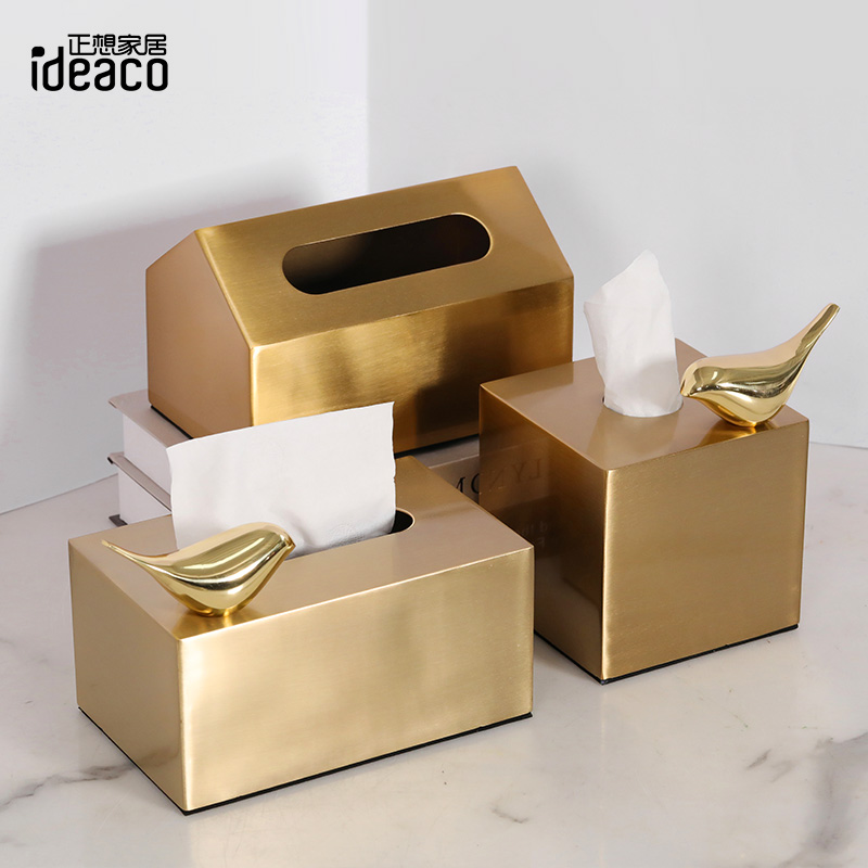 Nordic ins creative home living room dining room coffee table Tissue box Decoration simple light luxury style gold paper box