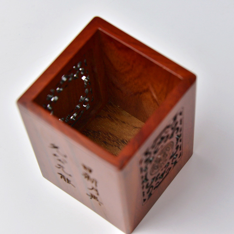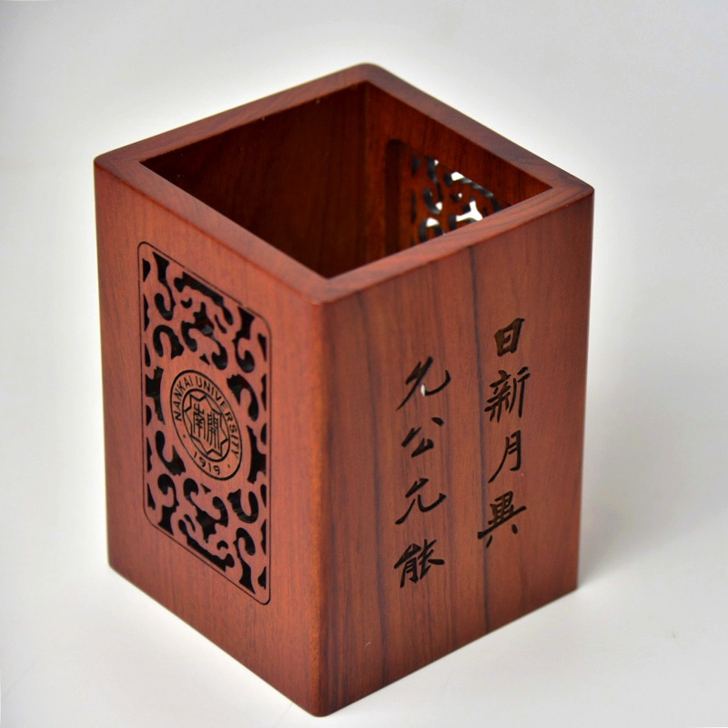 Red Wood Hollowed-out Pen Holder Nankai University Order Vintage Solid Wood Office Desk Book House Containing Original Design