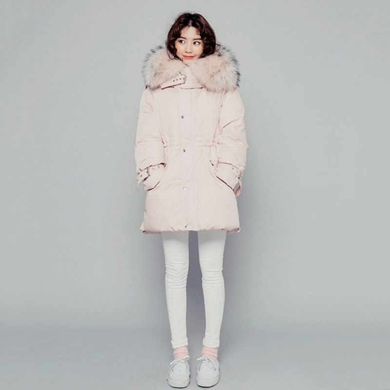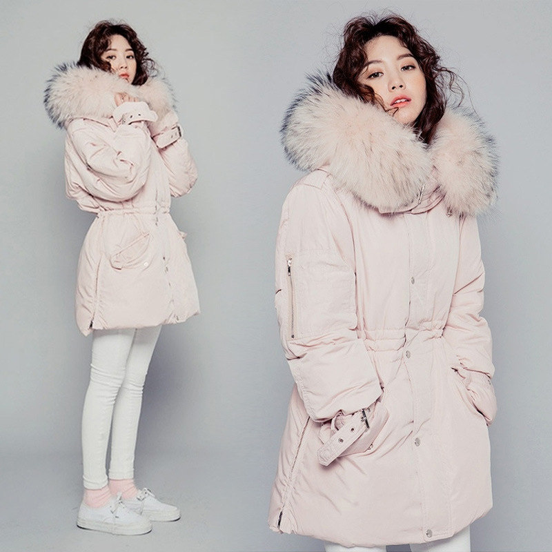 2019 Winter Korean version of the down jacket Women's medium long version South Korea's new big fur collar loose large size to fix the tide