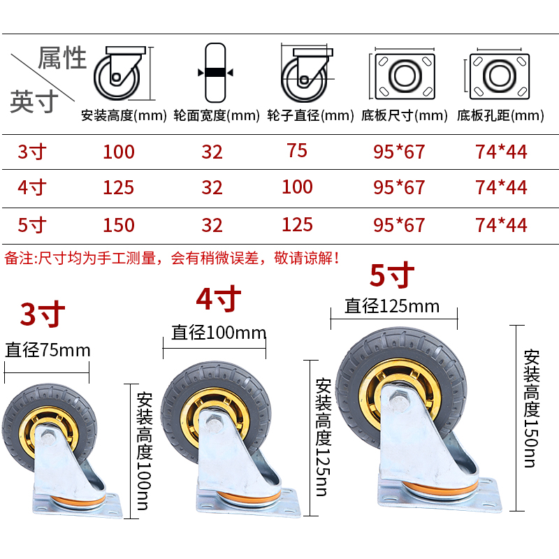 3-inch orientation wheel 3 inch universal wheel 3 inch brake wheel 4 inch orientation wheel 4 inch universal wheel 4 inch brake wheel 5 inch orientation wheel 5 inch universal wheel 5 inch universal wheel 5 inch brake wheel 3 inch 2 fixed twenty thousand