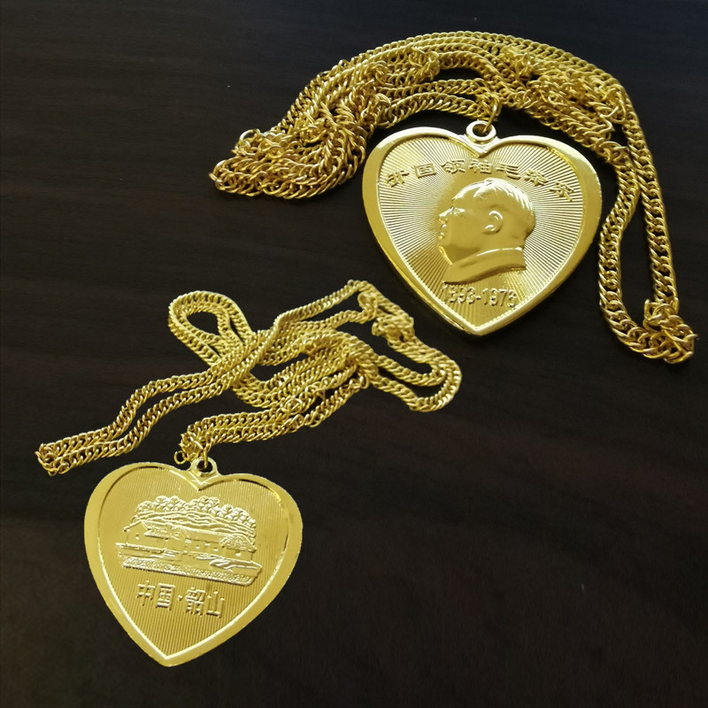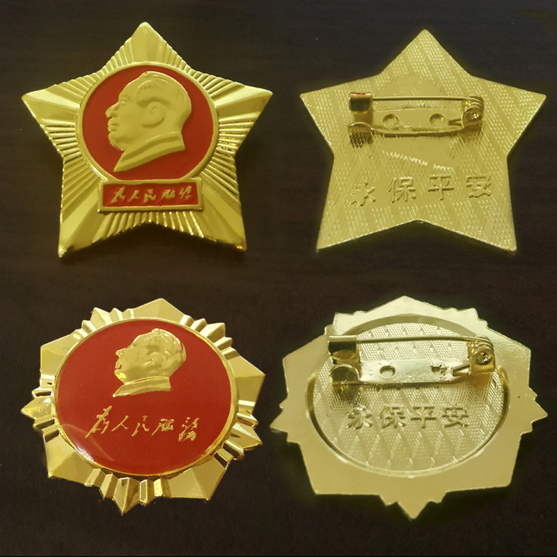 Mao main statue badge with a badge of great grandfather, great man's head badge round pentagram, and a crystal pendant for brooch.