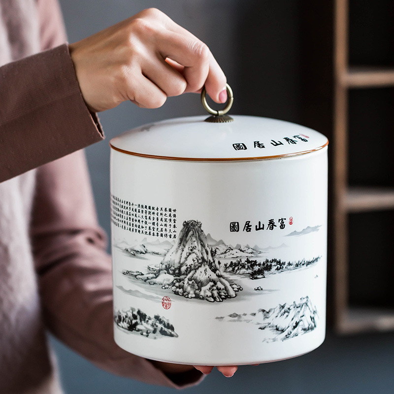 Pu-erh tea leaf jar Seven Pizza Ceramic Household Seal Black Tea Deposit Tea Decanter Tea Vat Tea Barrel Packing Containing Box Big