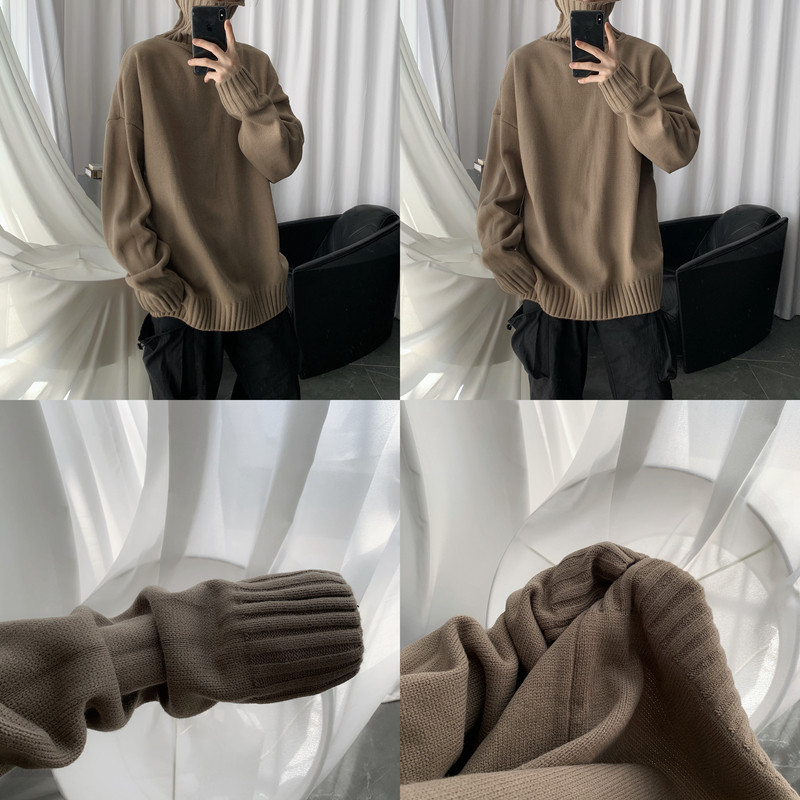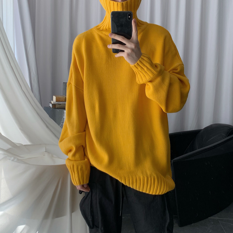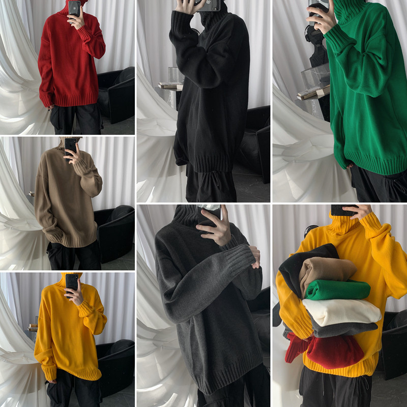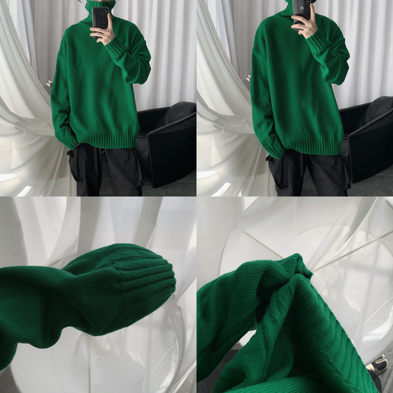 Self-made Lazy Wind Extra Thick Turtleneck Sweater Loose Winter Bottom Knitwear for Men's Fashion INS Lovers