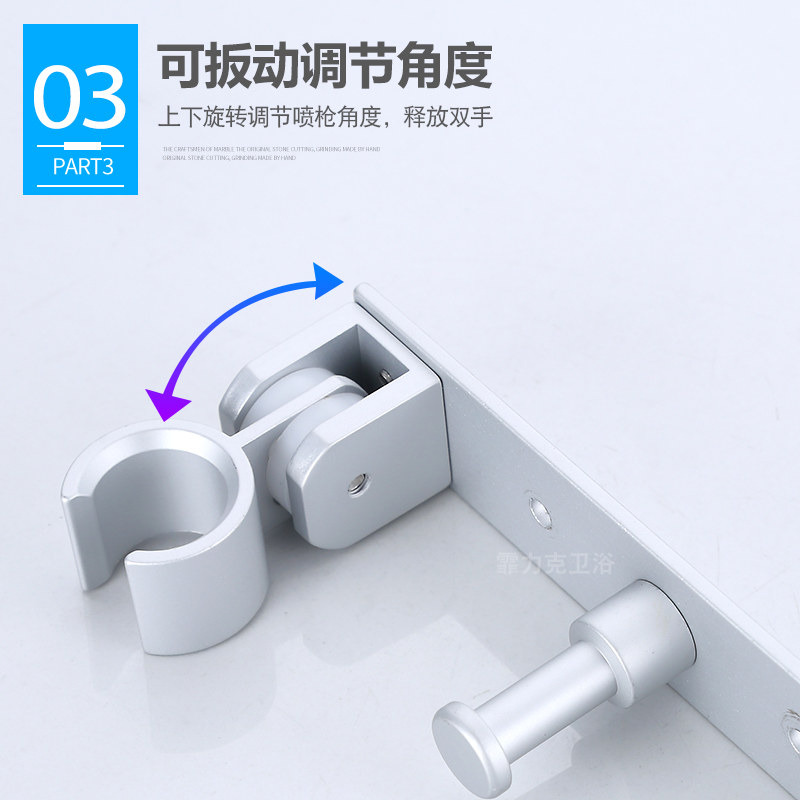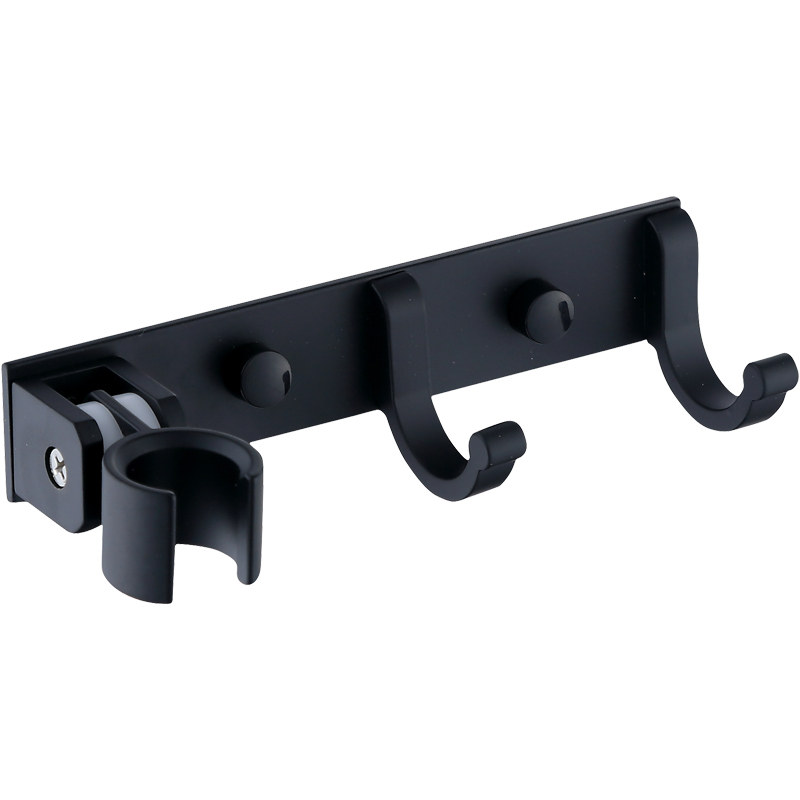 Bathroom non-perforated space aluminum shower bracket Adhesive hook shower head fixed base black hand spray wall seat