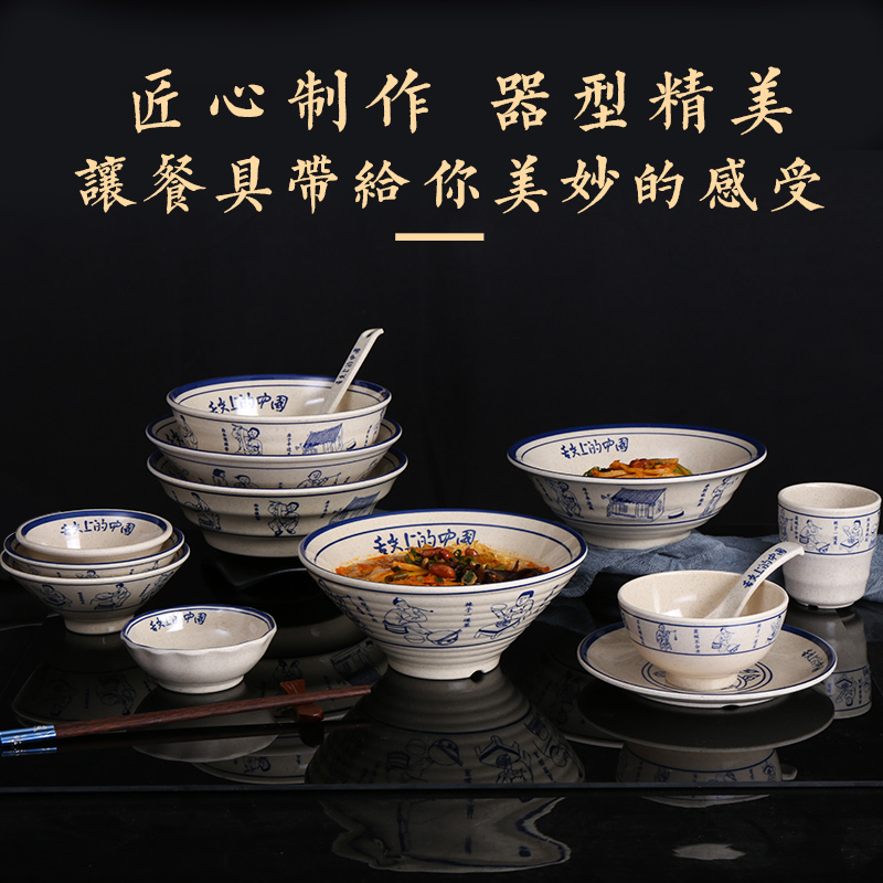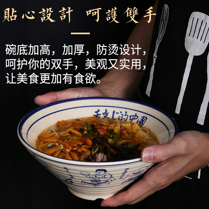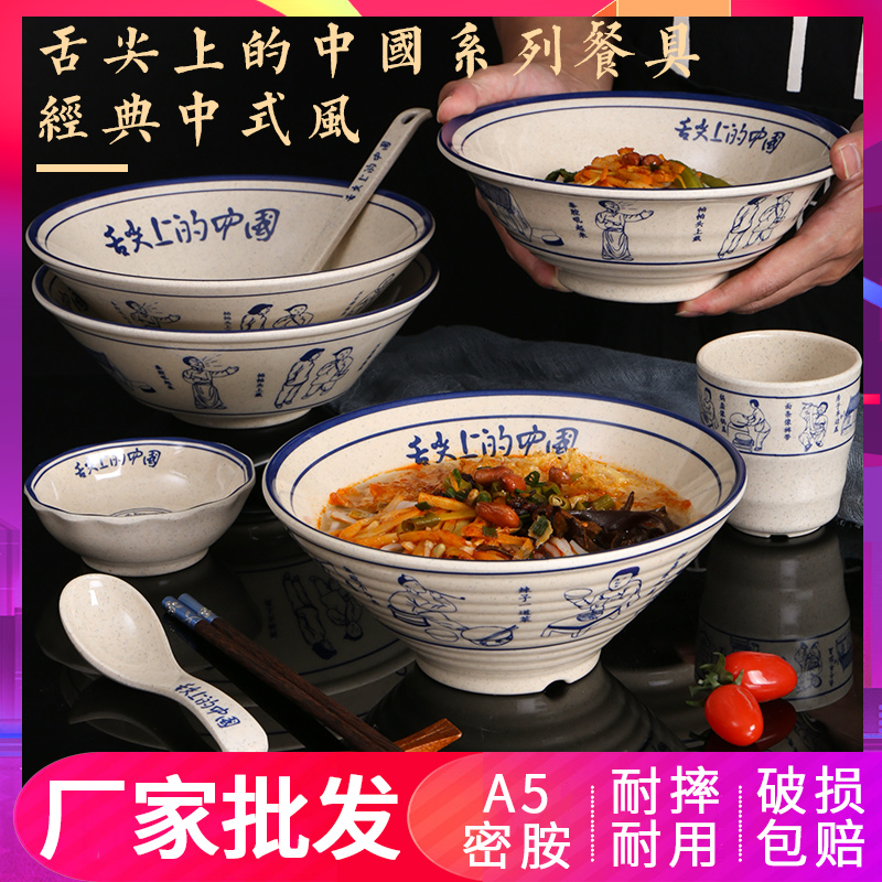 Melamine Noodle Noodle Noodle Bowl Soup Noodle Retro Creative Cold Peel Bowl Commercial Shallow Bottom Pull Noodles Large Bowl of Bubble Noodle Gallery Special Bowl