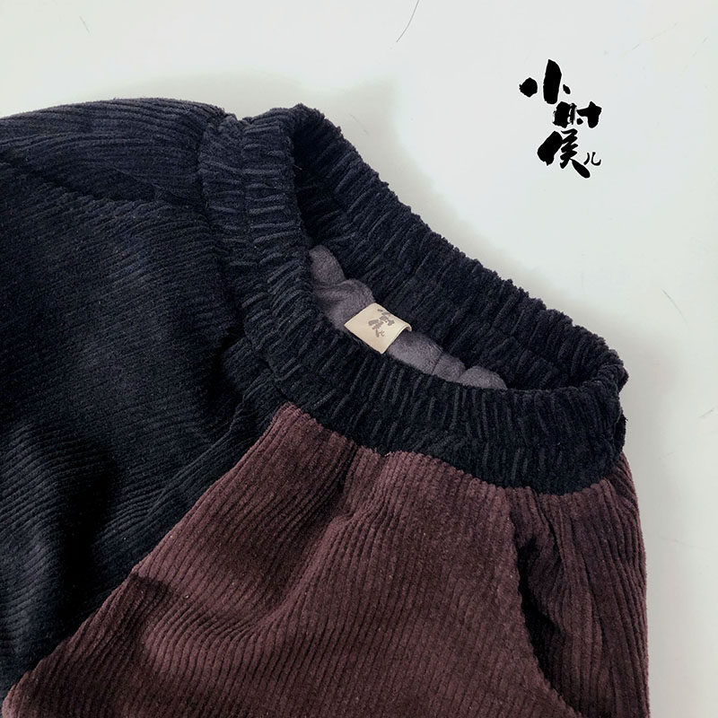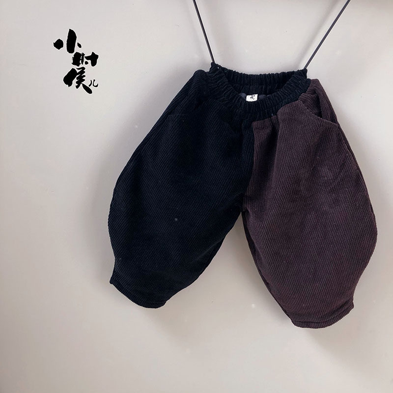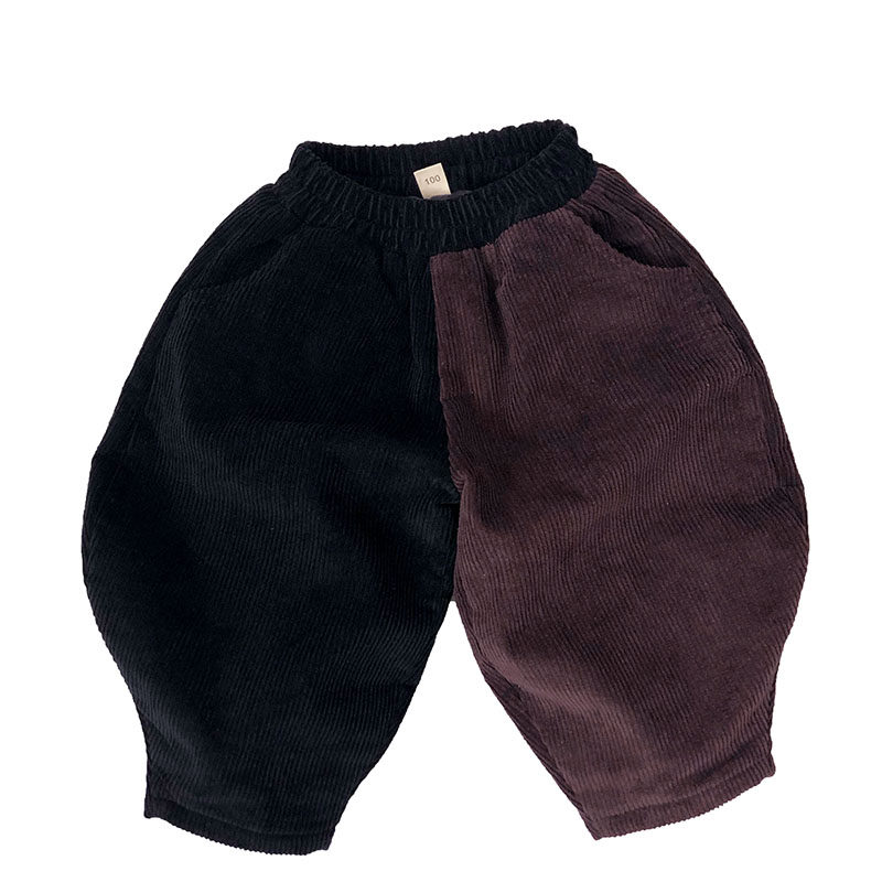 The rate of return is high, the new children's contrast color pants Korean version of the Western style boys and girls spring and autumn and winter plus velvet outer wear tide fat