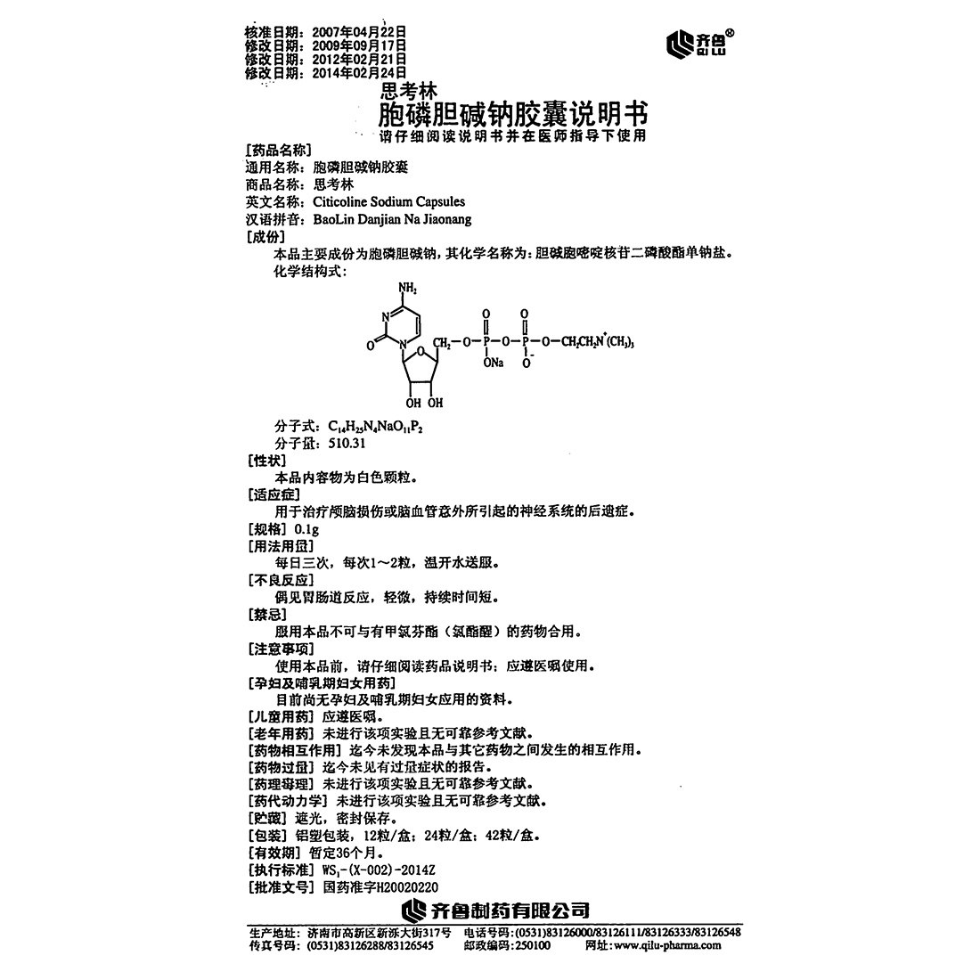 Zilu Thinking of Lin's Phosphorus Cholinergic Sodium Capsule 0 1g * 24 Granulate For Cranial Damage To The Nervous System Sequelae Caused By Vascular Accident