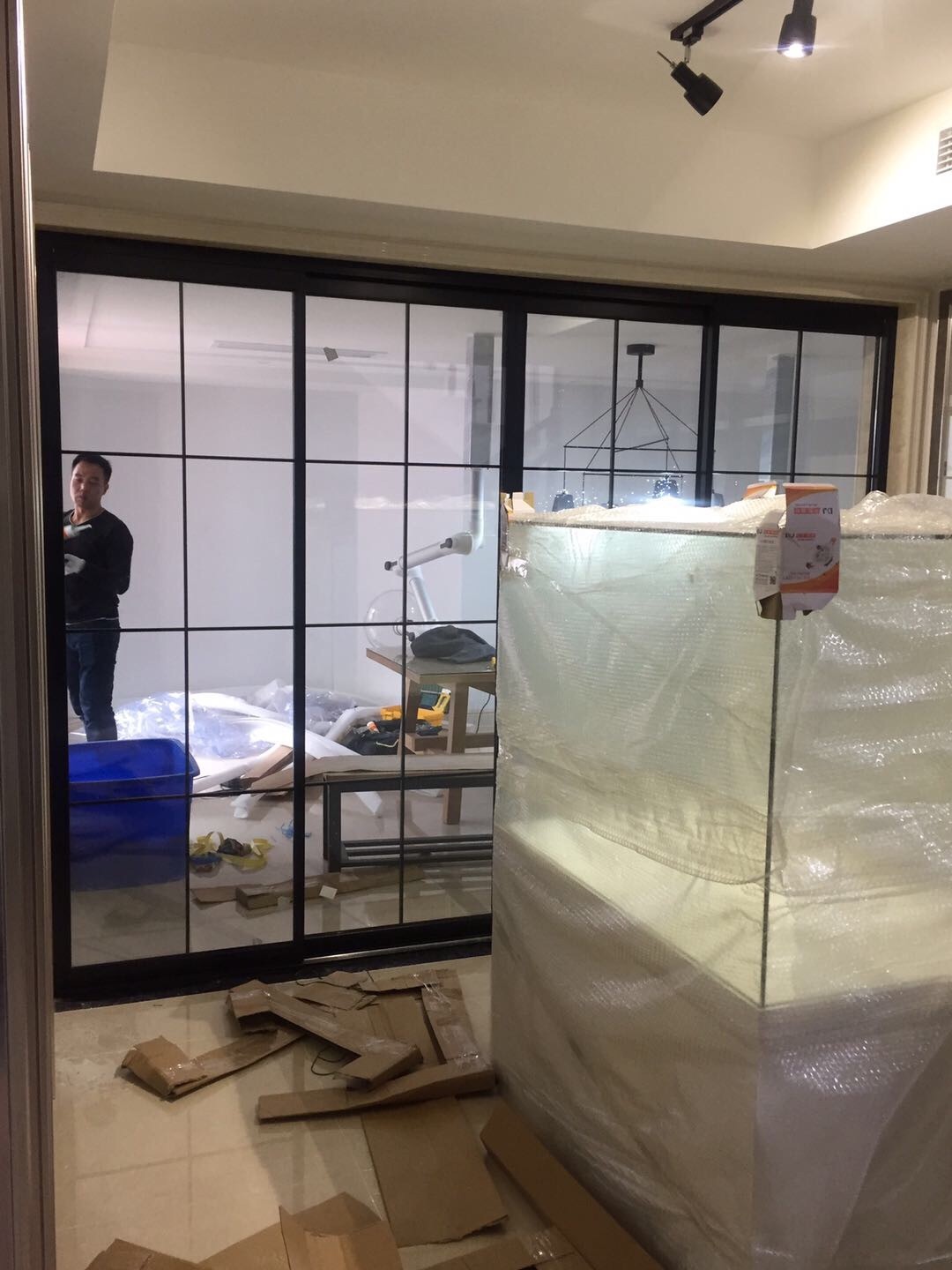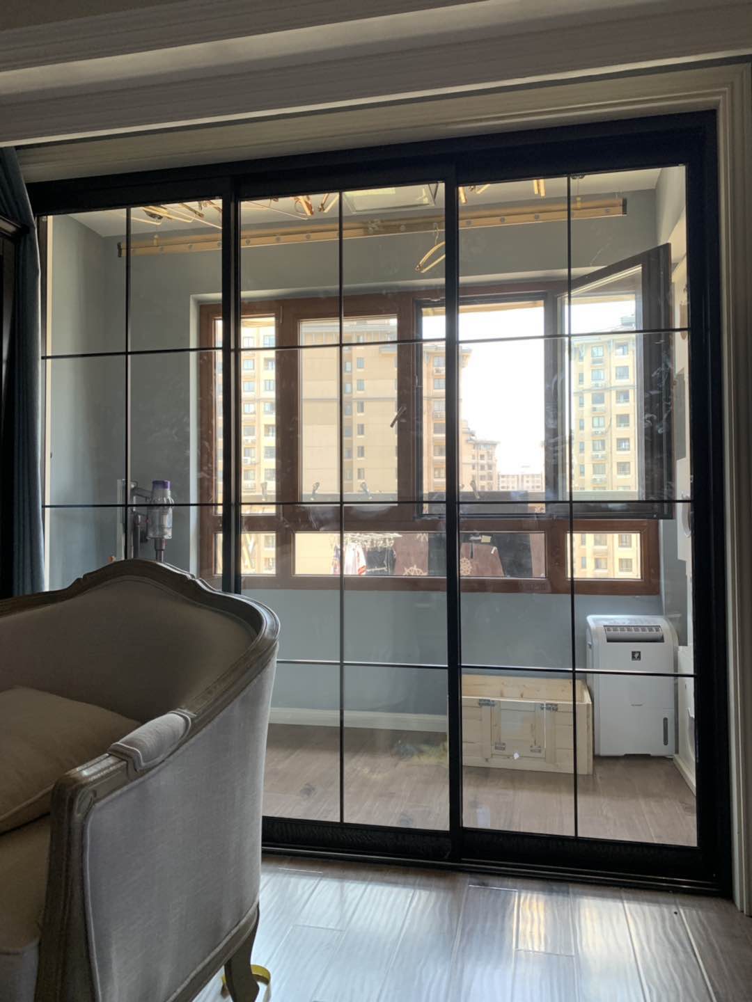 Shunxiang Anju moving door net red 2 8 narrow edge black frame Changhong gray glass partition double glass triple linkage sliding door
