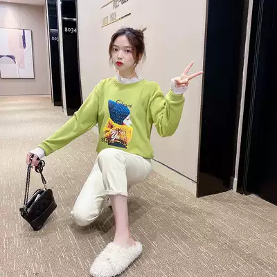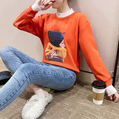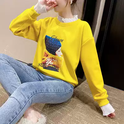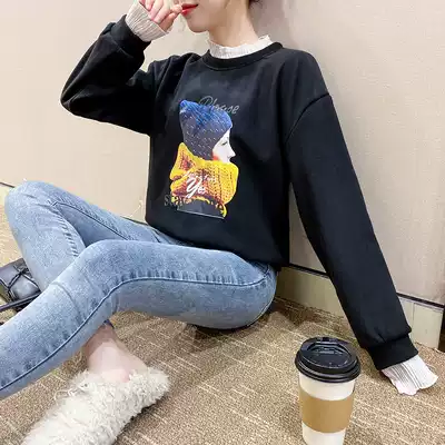 Short version of the sweater women 2021 autumn and winter New half high collar plus velvet thick fake two pieces loose Korean version of ins tide explosion